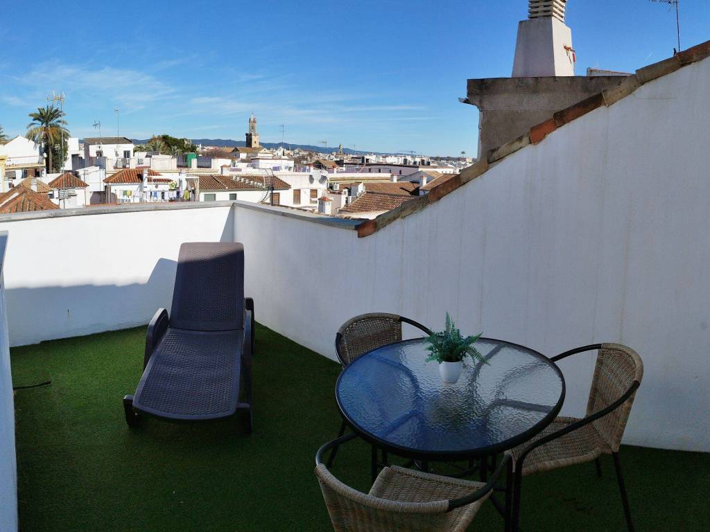 Se alquila para 2 personas máximo. Este ático tiene terraza privada con vistas al casco antiguo de Córdoba y 3 balcones con vistas a la Plaza de la Corredera.