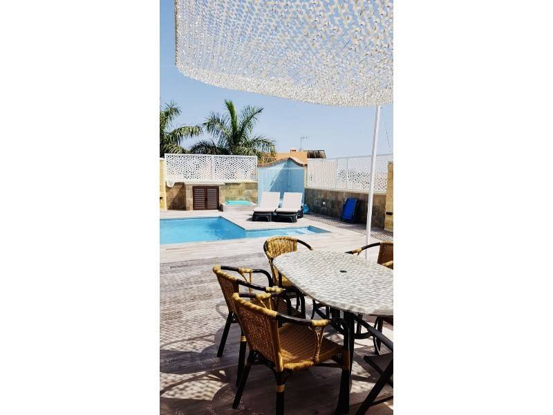 Salón con chimenea para disfrutar de las noches de invierno, desde este accedemos a la piscina, barbacoa con minibar, zona de relax y desconectar del día a día todo cuidado al más mínimo detalle.