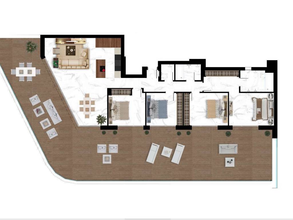 Todas las viviendas contarán con amplias terrazas, cocinas amuebladas y equipadas, aire acondicionado, calefacción, aerotermia,garaje y trastero. Zonas comunes con piscina y jardines.