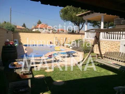Inmobiliaria marina vende impresionante chalet independiente en el viso de san juan!consta de 890 m2 de parcela y 500m2 construidos. Se distribuye en 2 plantas:- planta baja: garaje para 3 coches, 1 aseo, 2 habitaciones (una de ellas es el lavadero), un bar y una piscina interior climatizada. - primera planta: salón, cocina, 2 baños, 3 dormitorios y uno principal con con vestidor y baño con ducha y bañera/jacuzzi. Dispone de barbacoa, pozo, porche, piscina exterior, aire acondicionado en todos los dormitorios y el salón, pérgola, suelos de gres, puertas de sapelli y ventanas de aluminio climalit.excelente relación calidad-precio. Mejor ver, no dude en contactar con nosotros!