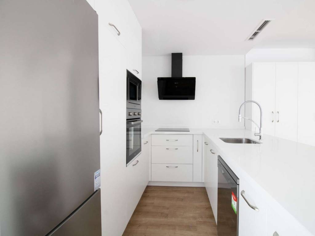 Cocina completamente montada, incluyendo electrodomésticos y encimeras porcelánicas. Aire acondicionado por conductos instalado, con maquina Daikin, y también ventilación mecánica controlada.