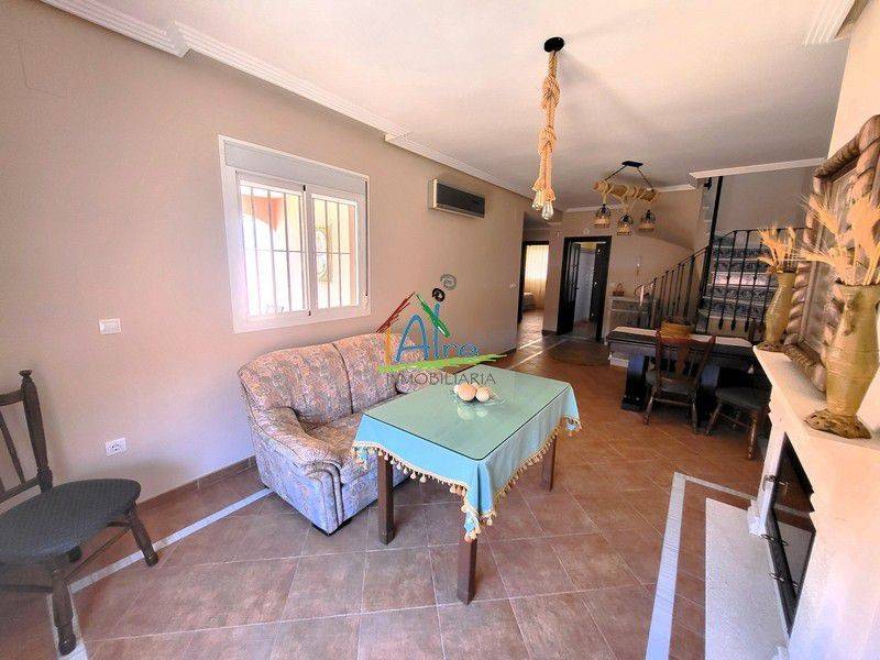 Fantástica casa en dos plantas. En planta alta encontramos dormitorio con baño en suite y terraza. En la planta baja podemos encontrar baño completo, dos dormitorios más, salón completo con chimenea, cocina independiente con acceso al exterior, trastero, lavadero, porche, y amplio patio donde se podrían albergar varios vehículos. Como extras el inmueble tiene bomba frío calor para los dormitorios y el salón, placas solares para el agua caliente, todo el patio alicatado y armarios empotrados en todos los dormitorios.