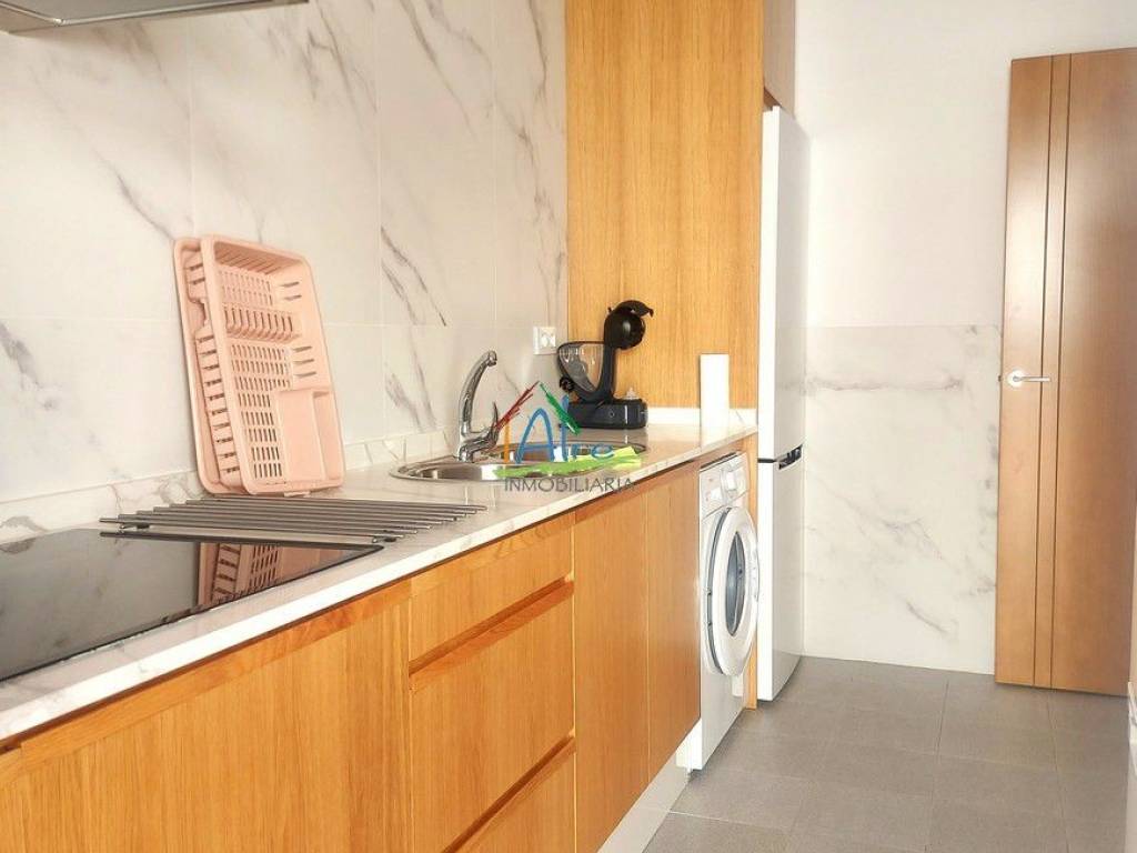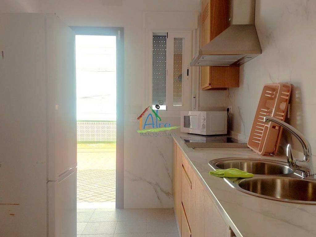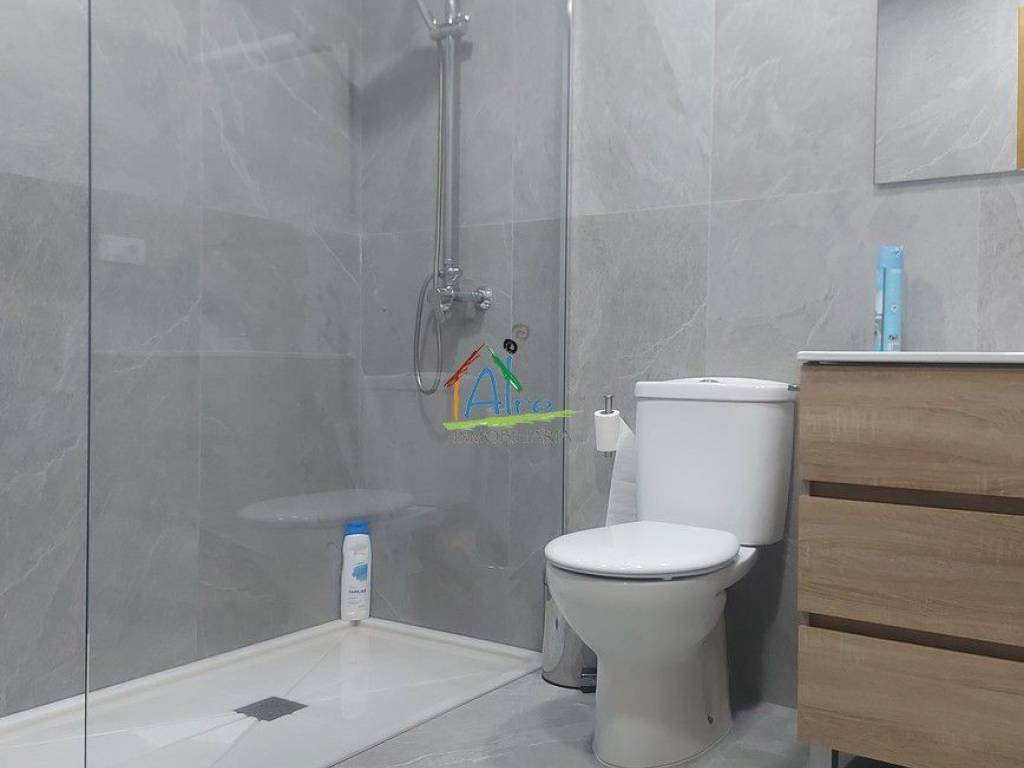 La vivienda inferior, con tres acogedores dormitorios, un baño completo y su propia cocina independiente, se presenta como un espacio igualmente funcional y acogedor. Con acceso a una terraza privada, este hogar ofrece un rincón perfecto para el relax y la privacidad, rodeado de la tranquilidad del entorno costero.