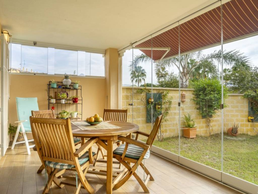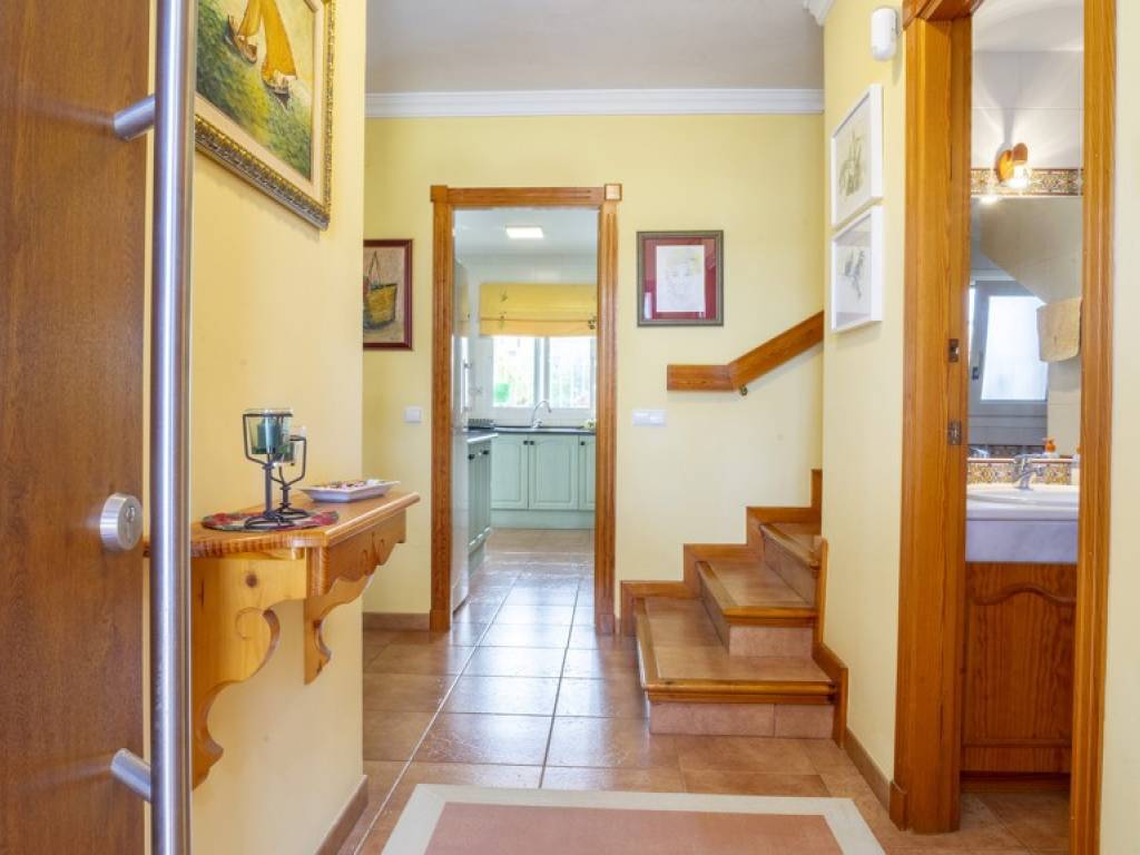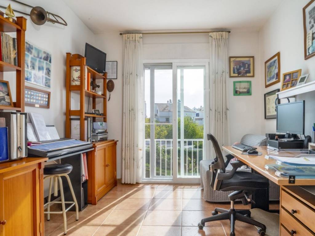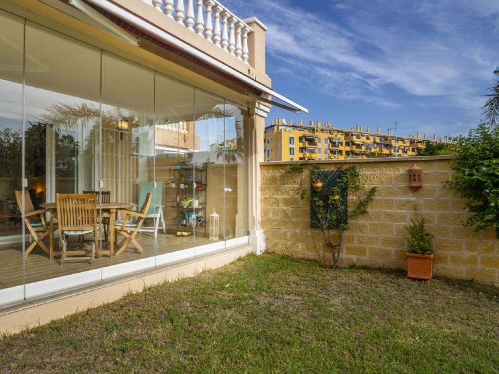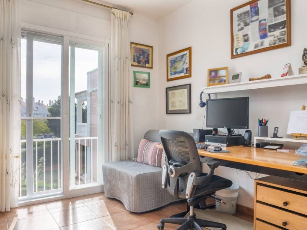 La vivienda, sobre una parcela de 300 m², cuenta con un jardín privado con posibilidad de construir piscina, terraza acristalada con sistema Lumon, tres dormitorios (con opción a un cuarto en planta baja), dos baños completos —uno en suite— y un aseo adicional. Además, dispone de dos plazas de aparcamiento cubiertas, un valor añadido en esta exclusiva ubicación.