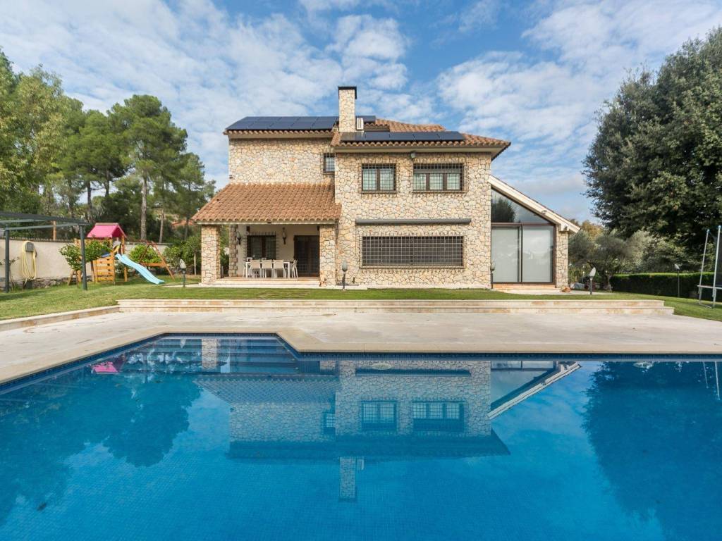 Grup90 les presenta esta impresionante casa atemporal ideal para familias numerosas en la prestigiosa urbanización Fontpineda, cerca de la entrada de Pallejá, a 20 minutos de Barcelona ciudad y del aeropuerto.La vivienda dispone de planta baja, planta piso y buhardilla, además de una preciosa bodega en el sótano. Una vez accedemos a la casa nos da la bienvenida un espectacular recibidor a doble altura, que sirve como epicentro para la distribución de la casa. En el ala sur dispone del majestuoso salón-comedor con salida al jardín, además linda con dos despachos y un aseo. También hay acceso directo del comedor a la cocina, una cocina moderna de toques clásicos renovada hace cinco años, desde la cual hay paso a la lavandería y se puede bajar a la bodega del sótano. En el ala norte de la misma planta tendríamos una habitación con baño, el amplio garaje para dos coches y trastero.La planta primera, a la cual se accede a través de la majestuosa escalera del recibidor dispone de la gran suite principal con el dormitorio, dos grandes vestidores y el baño privado, además en esta planta encontramos una habitación individual, una gran habitación triple abuhardillada ideal para los niños y otro baño completo para dar servicio a la planta. Finalmente la buhardilla es un espacio diáfano encantador como sala de juegos o habitación polivalente, que da salida a un solárium orientado a sur.Como espacio construido adicional la casa dispone de un fantástico gimnasio con vistas al jardín.Los exteriores son realmente impresionantes, jardín de diseño en perfecto estado con iluminación nocturna y red de irrigación automática, se trata de dos parcelas unidas, con una superficie de 1.646 m2 de terreno, una fabulosa piscina salina y casetas auxiliares de instalaciones. El jardín tiene salida directa al bosque donde poder disfrutar de la naturaleza directamente desde la casa.En lo que refiere a sostenibilidad la casa está equipada con placas solares y cargador para vehículo eléctrico, complementado con un sistema de calefacción por radiadores de gas. La casa cuenta con dos circuitos independientes de alarmas de seguridad y dos circuitos de cámaras monitorizadas 24/7, además de cerramientos de alta seguridad y ventanas protegidas con rejas metálicas, que combinan con el diseño de la fachada,La urbanización Fontpineda es una de las zonas residenciales más prestigiosas del Baix Llobregat, por su ubicación elevada en medio de la naturaleza y sus excelentes comunicaciones con la ciudad y el aeropuerto. Además dispone de servicios de primera como el Colegio Internacional Sullivan el Colegio concertado l'Oreig, centro deportivo, farmacia y restaurantes.