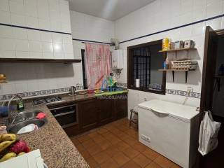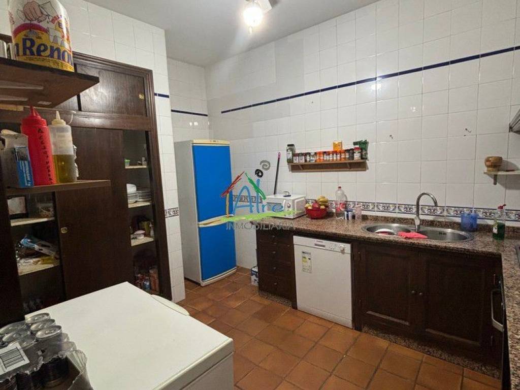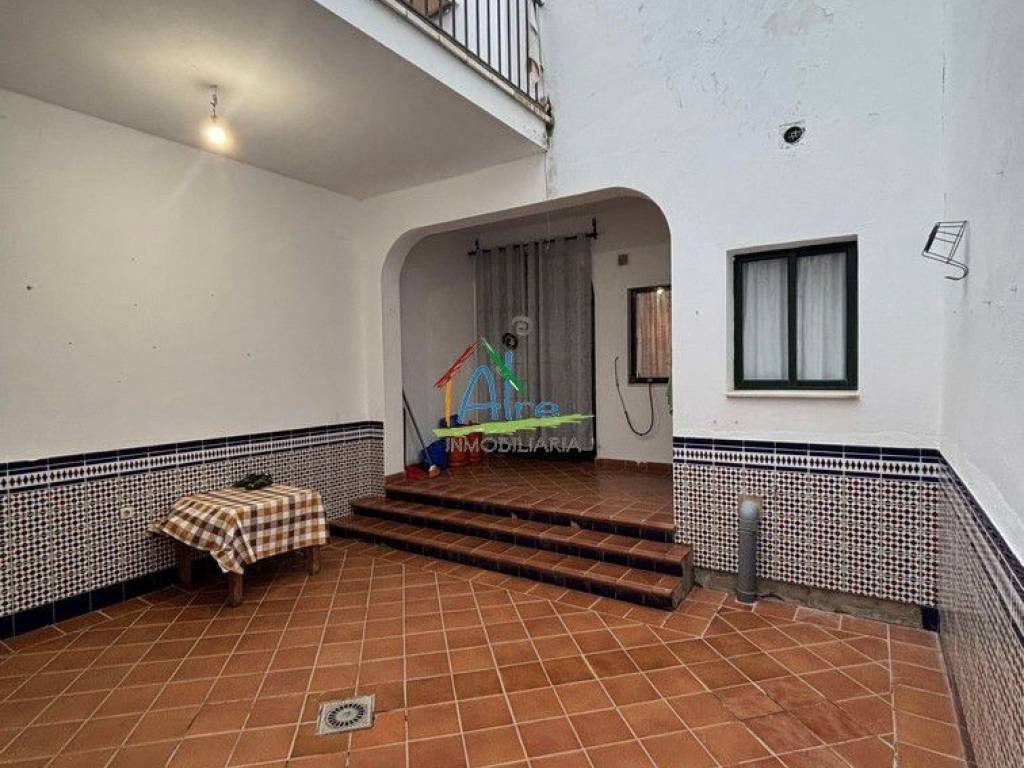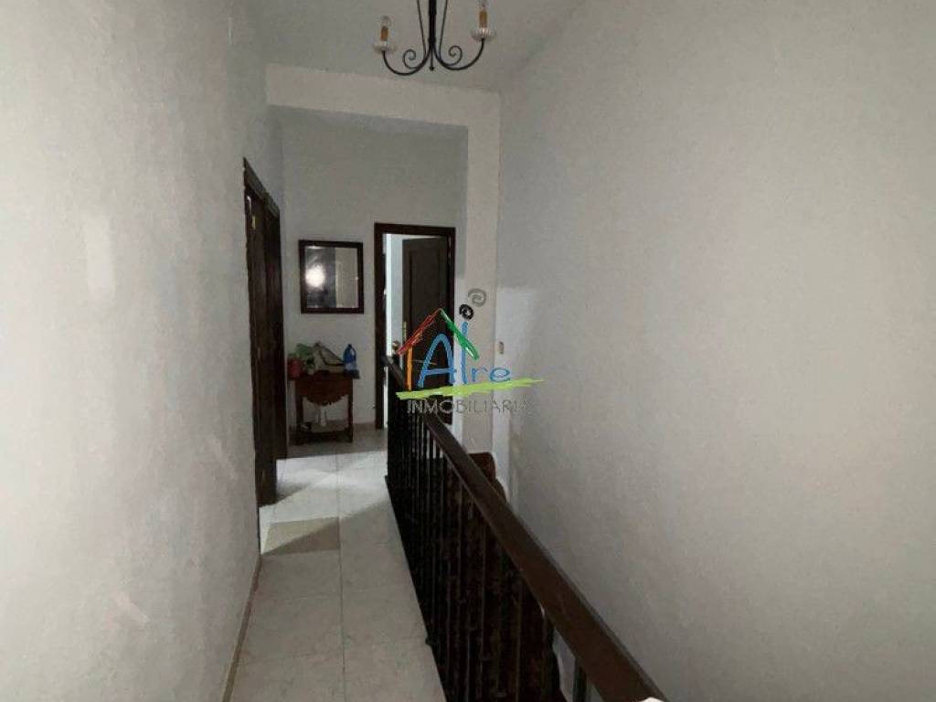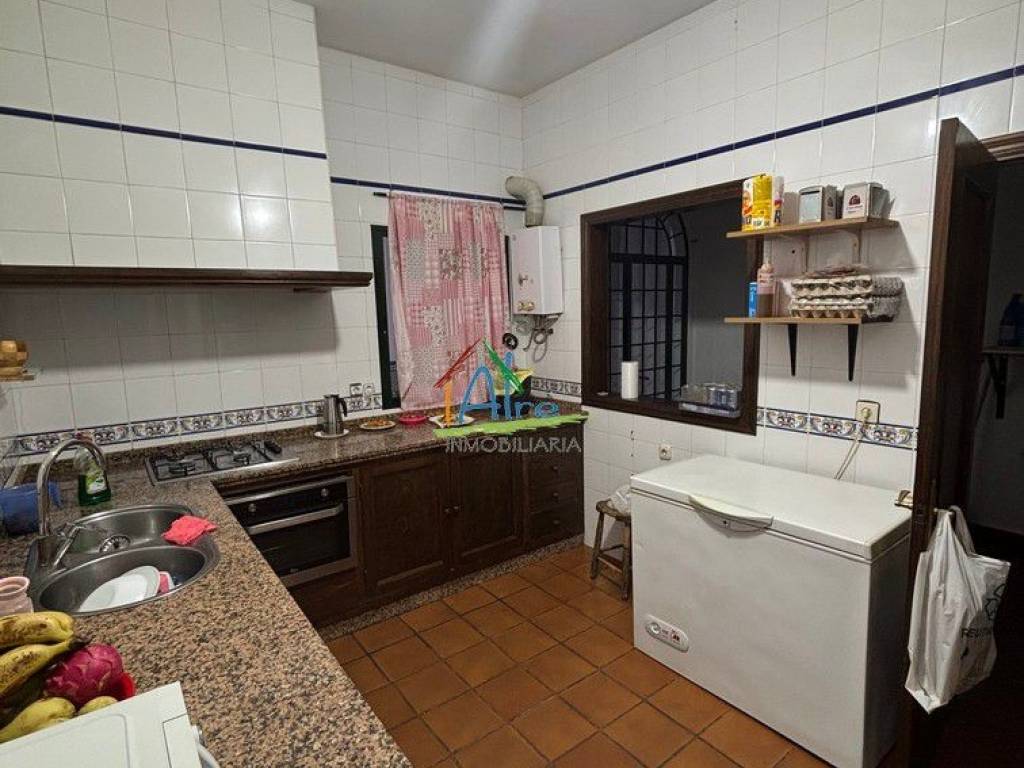 Bonita casa en El Rocio. Con acceso desde dos calles. El inmueble consta de dos plantas con una azotea transitable. La planta baja tiene un amplio salón comedor con chimenea, 1 baño completo con termo de gas independiente, cocina totalmente amueblada, patio y un gran salon trasero para usarlo como trastero, garaje o cuadras con salida a la calle trasera. La segunda planta se distribuye con 7 habitaciones con armarios empotrados , 2 baños con termo de gas independiente..