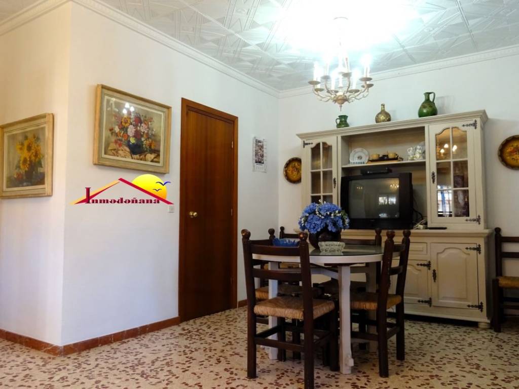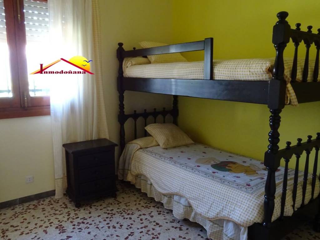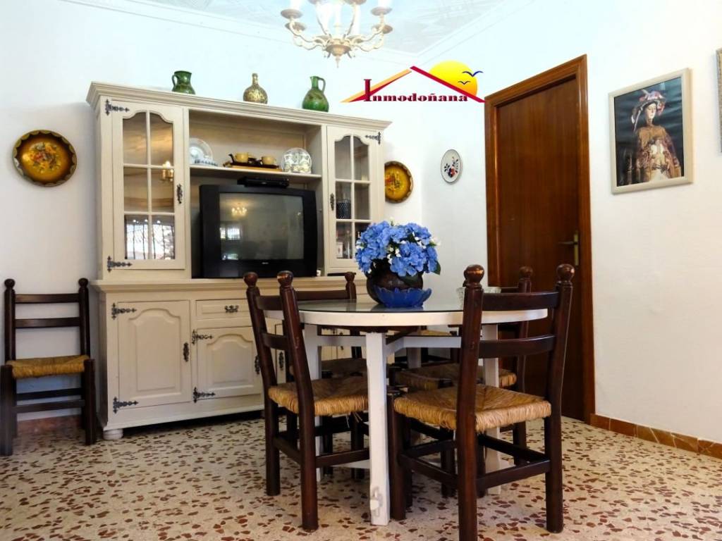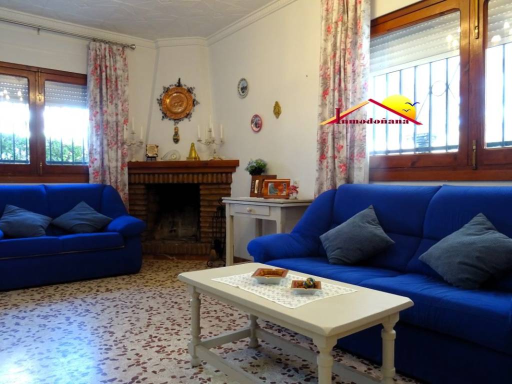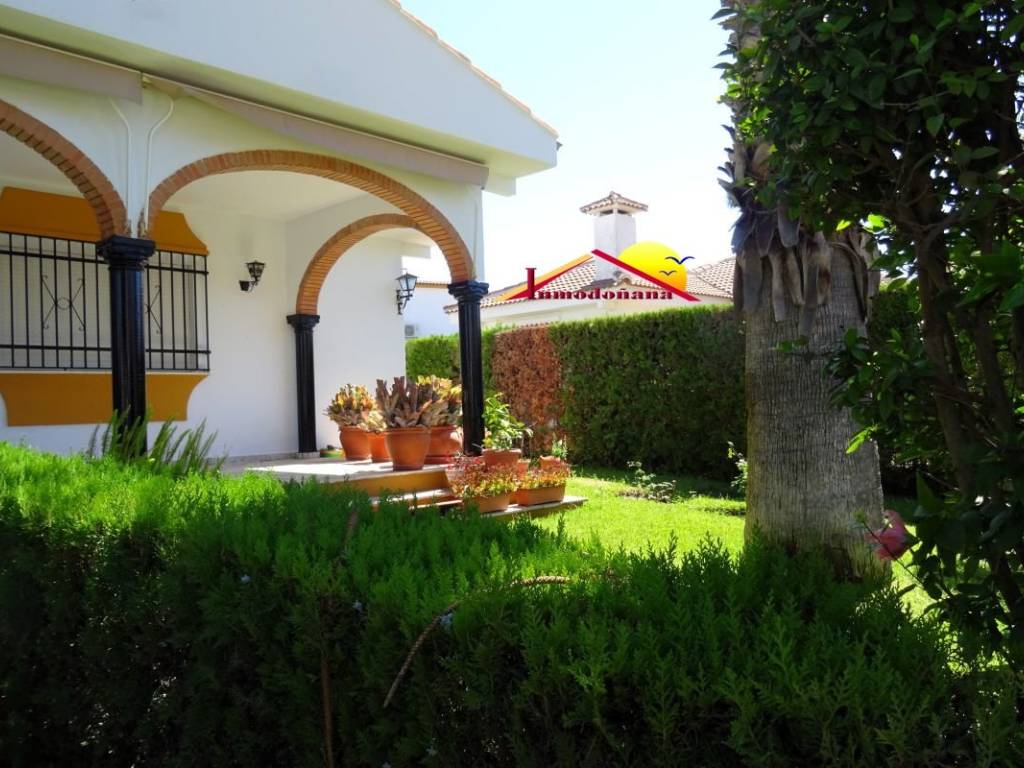 Precioso chalet independiente en pleno centro de Matalascañas. Se distribuye en una sola planta y cuenta con entrada propia de vehículos con capacidad para dos. El inmueble, de carácter exclusivamente familiar, se compone de amplio porche de entrada, vestíbulo, que divide la vivienda en dos grandes zonas bien diferenciadas, la de disfrute y la de descanso. A la derecha nos encontramos un amplio salón con chimenea, una habitación principal con baño en suite y un salón comedor con acceso directo a la cocina, en la que disponemos de una despensa, un trastero y desde la que podemos acceder a la parcela. Ya en el ala izquierda nos encontramos con cuatro dormitorios, todos con armarios empotrados y dos baños completos más. Esta vivienda familiar, la cual se vende semi amueblada es muy amplia , luminosa y cuenta con ventilación exterior en todas las estancias. Gracias a su ubicación dispone de todos los servicios a su alcance. No lo dude y concierte una visita.