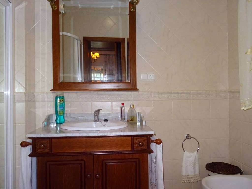 Espectacular chalet independiente con piscina privada. Ubicado muy cercano al centro, cuenta con una parcela de 600 metros cuadrados y entrada de vehículos de gran capacidad ( para cuatro al menos). Se distribuye en una sola planta y en el exterior nos encontramos con porche delantero y trasero, dos terrazas, un baño, tres trasteros y zona de barbacoa completamente equipada aledaña a la fantástica piscina. Ya en el interior tenemos un recibidor, amplio salón con chimenea, cocina independiente completamente equipada con gran alacena y salida directa al exterior de la parcela, cuatro dormitorios, dos de ellos con baño en suite y otro baño completo. Tiene calefactores de energía azul en todas las estancias. Cercano al centro y a todos los servicios. No lo dude y concierte una visita sin compromiso.