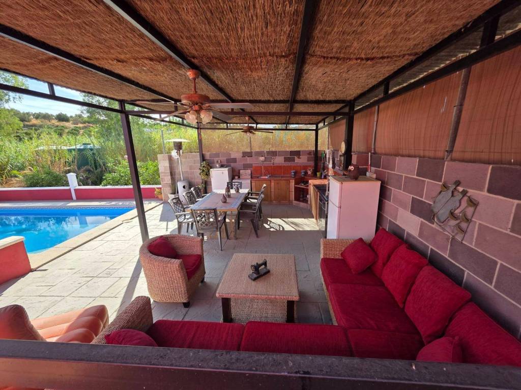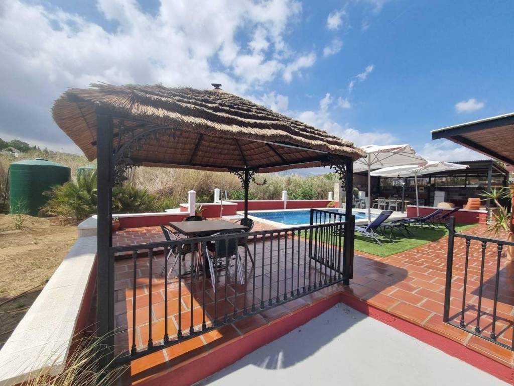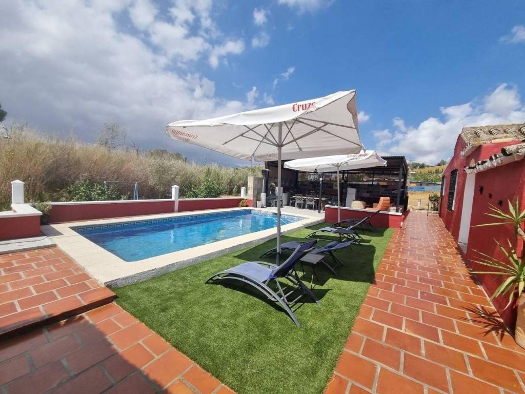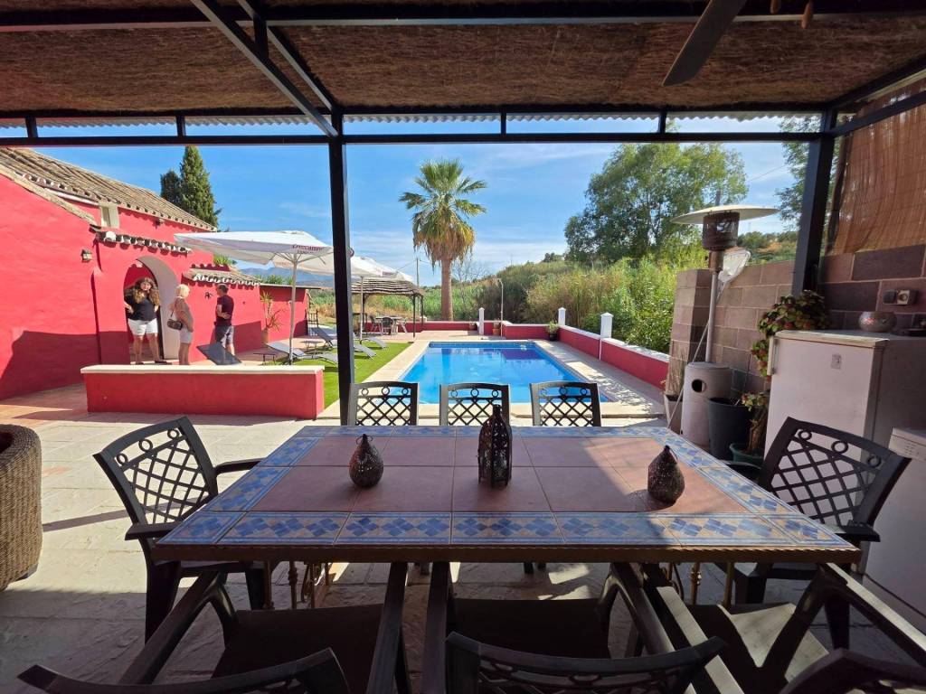Finca rústica distribuida en cinco 5 apartamentos independientes. Cuatro de ellos se encuentran en la planta baja y uno en la primera planta. Cada apartamento tiene unas características únicas que los hacen ideales tanto para vivir como para alquilar. El primer apartamento, cerca de la zona de la piscina, tiene un dormitorio doble, cocina, aire acondicionado portátil, ventilador de techo, baño y terraza privada. El segundo apartamento dispone de cocina, comedor, dormitorio con techos y cama de madera, cuarto de baño con bañera y terraza privada. El tercer apartamento, distribuido en dos plantas, dispone de cocina totalmente equipada, sala de estar con aire acondicionado, zona de comedor, baño completo y un dormitorio principal con aire acondicionado en la primera planta con cama de matrimonio y techos de madera. El cuarto apartamento, situado en la primera planta de la propiedad, incluye cocina-comedor, zona de comedor, dormitorio doble y cuarto de baño con bañera. Por último, el quinto apartamento es más pequeño y cuenta con un dormitorio y un cuarto de baño.Las zonas exteriores son compartidas e incluyen piscina, amplia zona de barbacoa y jardín. Además, la propiedad cuenta con un trastero y una zona de lavandería. El terreno, completamente vallado y llano, tiene agua de un pozo privado y de la acequia comunitaria.Ideal para aquellos que buscan privacidad y tranquilidad, situada en la zona norte de Coín, a 15 minutos en coche del pueblo.