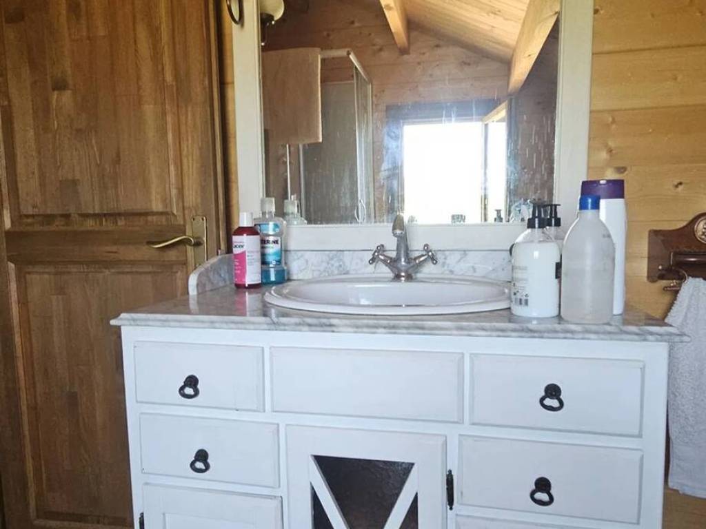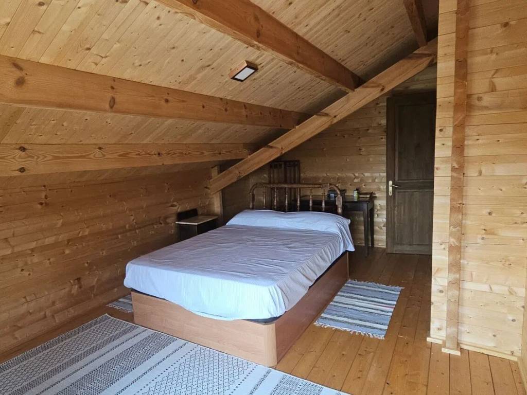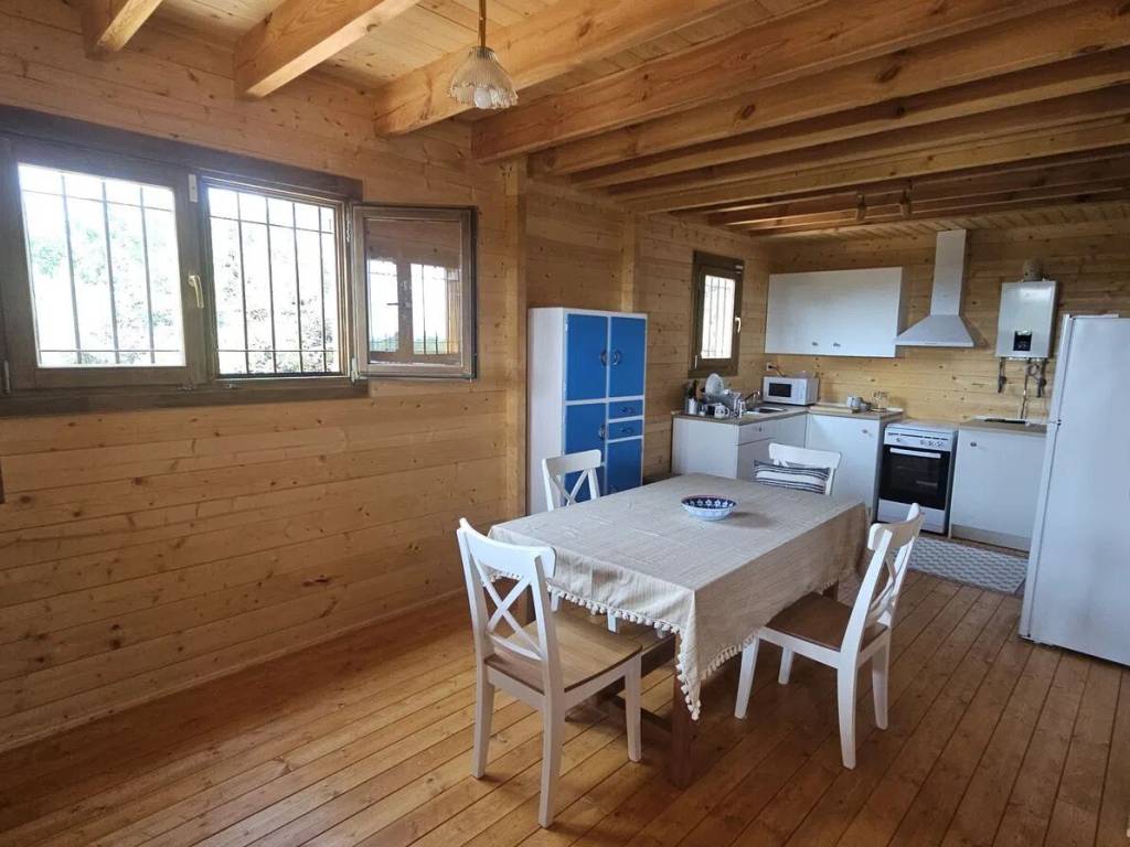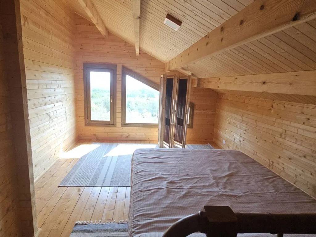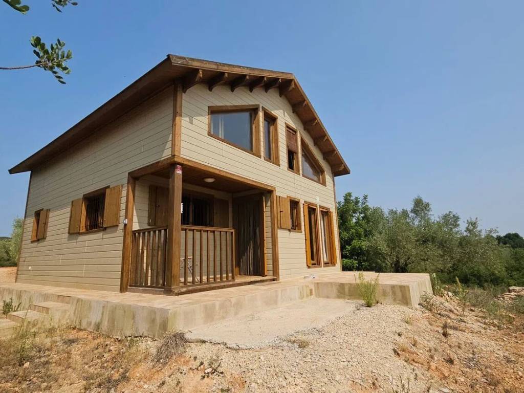 Esta encantadora finca se extiende sobre unos 11.000 m² y ofrece un pintoresco olivar e impresionantes vistas al mar que complementan perfectamente la tranquila ubicación. La moderna casa de madera tiene 117 m2 de superficie construida, fue construida en 2022 y combina la elegancia contemporánea con el encanto natural. El clima de la casa es muy agradable en verano e invierno. En la planta baja encontrará un salón/comedor luminoso y acogedor con muchas ventanas que ofrecen vistas al campo circundante y al mar. Una acogedora chimenea proporciona calidez acogedora en las noches más frescas. La cocina abierta está equipada de forma moderna y es ideal para disfrutar de agradables veladas gastronómicas. En este nivel también hay un dormitorio y un aseo para invitados. En la planta superior hay tres cómodos dormitorios y un elegante baño. La casa fue construida con permiso de obras, ofrece energía solar y conexión a un pozo comunitario. Hay un sistema de agua potable en la casa. Por supuesto se puede construir una piscina o un garaje. En total se pueden construir otros 100m2.