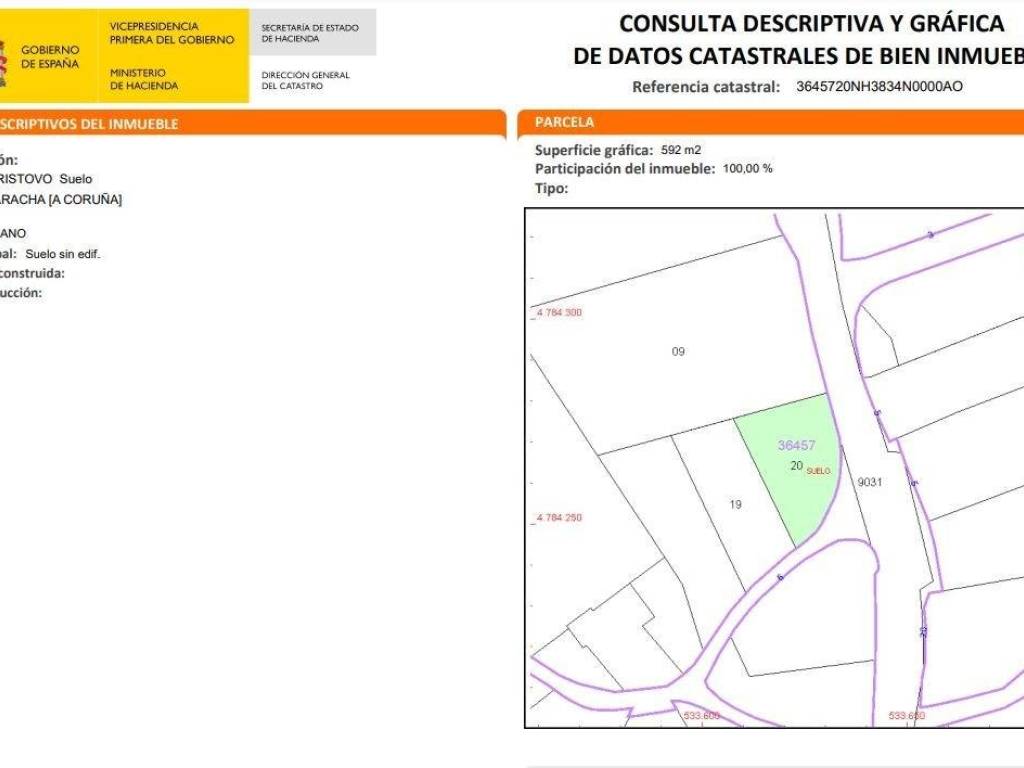 Desde Blancocasa Inmobiliaria os ofrecemos en venta este magnífico solar que ocupa la superficie de 592 m, ubicado en una zona tranquila y bien comunicada. El solar cuenta con camino por dos lados, lo que facilita el acceso, y cuenta con fácil conexión a suministros de agua y luz gracias a la cercanía con el resto de viviendas.Ubicado a solo 5,4 km de la Plaza del Ayuntamiento, a 11 km de Carballo, a 17 km de la Playa de Caión y a 27 km de A Coruña, es el lugar perfecto para quienes busquen construir su hogar en una ubicación estratégica con fácil acceso a todos los servicios.Precio: 39.999 , no incluye Impuestos ni gastos de Notaría ni de RegistroNo dejes pasar esta oportunidad! Contáctanos para más información 604020367 - 881948196info@blancocasa.net www.blancocasa.netLos datos expuestos en este anuncio son ofrecidos por terceros, meramente informativos y no contractuales y se suponen correctos. Blancocasa Gestión de Activos, S.L.U. no garantiza su veracidad. La oferta se sujeta a errores, cambios de precio, omisión y / o retirada del mercado sin aviso previo.