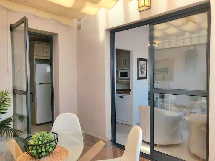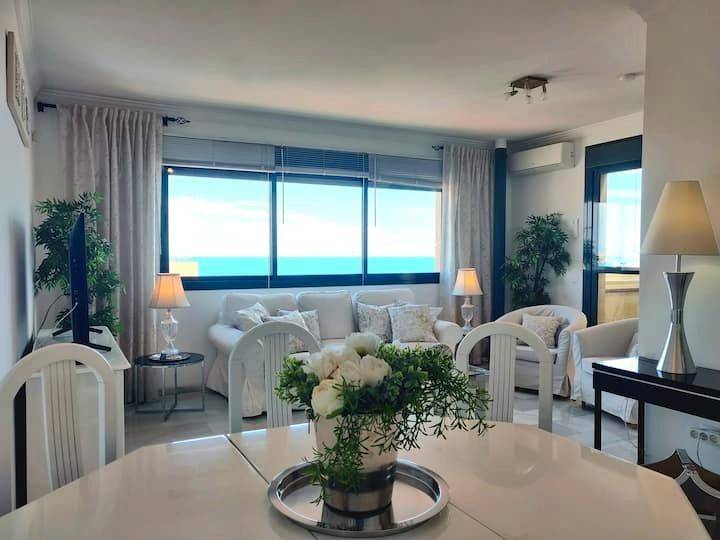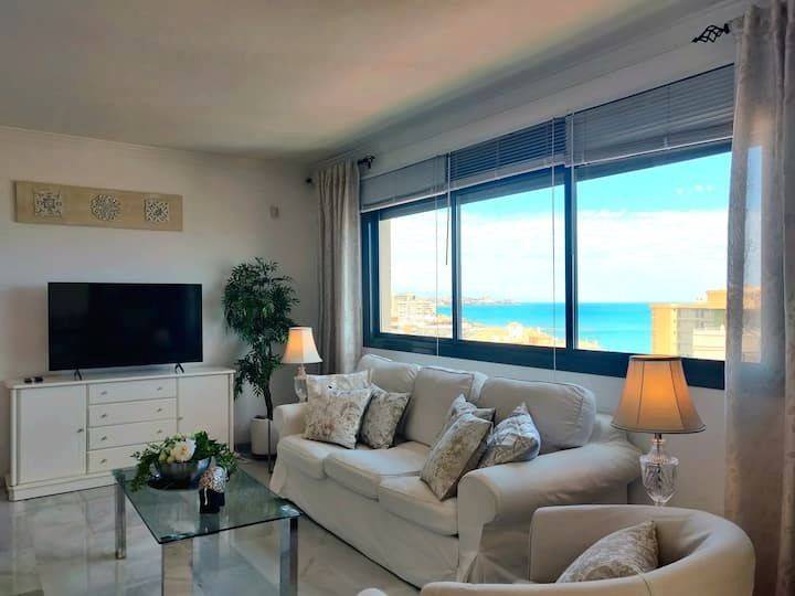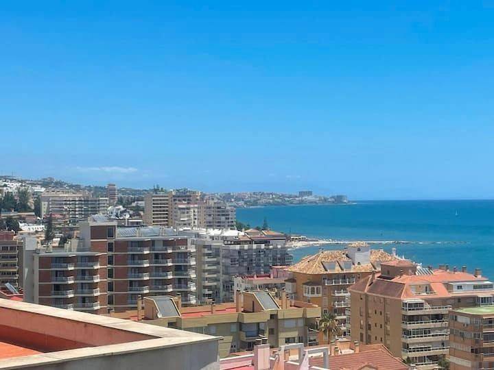 Magnífico ático con impresionantes vistas panorámicas al mar en Torreblanca a pocos metros de la playa. Con una superficie construida de 103 m2, vivienda 84 m2. Año de construcción 2002. Orientación Sur. Vivienda en una 10ª planta con ascensor. Consta de 2 dormitorios con armarios empotrados, 2 baños, cocina independiente equipada, Gran salón con amplios ventanales, por lo que es muy soleado y luminoso, podrás disfrutar de las vistas del mar desde tu salón, amplia terraza con vistas panorámicas al mar y al Sur, con sol casi todo el día, tiene otra terraza en la parte trasera con sol de tarde. Dispone de sauna con vistas panorámicas. Se vende amueblado listo para entrar a vivir o como inversión. Dispone de licencia turística. Aire acondicionado, suelos de mármol, etc. Garaje incluido. La urbanización tiene zonas ajardinadas y piscina. Cerca de todas las comodidades. Cerca de transporte público, supermercados, tiendas, farmacia, etc. Visita recomendada.