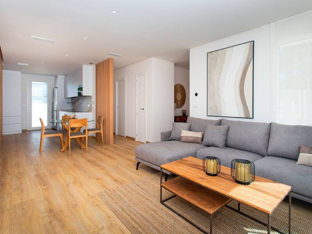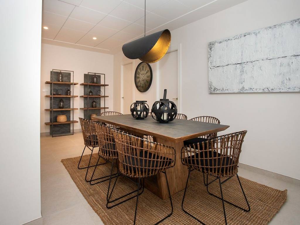 Estas bonitas villas disponen de cocina totalmente amueblada, con encimera de granito o aglomerado sintético, pavimento de gres porcelánico o tarima flotante en el interior, puerta de acceso blindada, y escayolas lisas en techos.