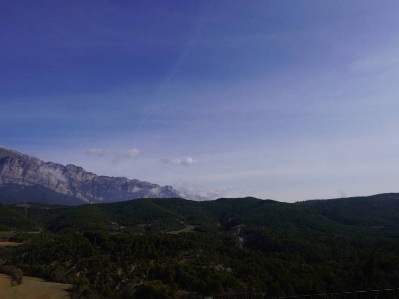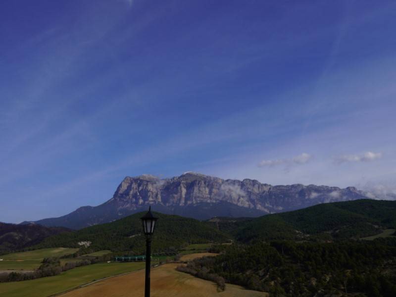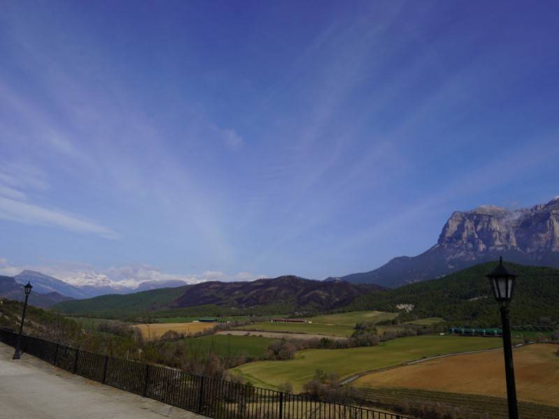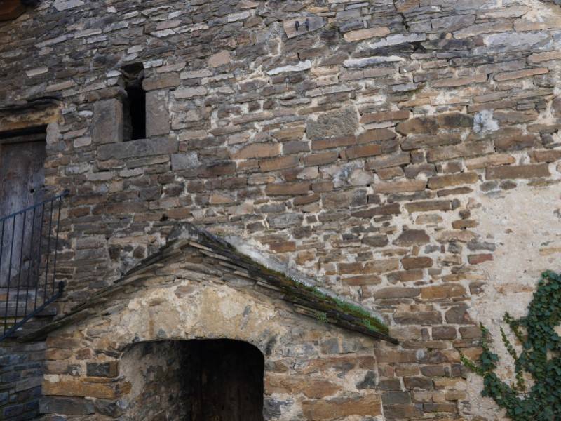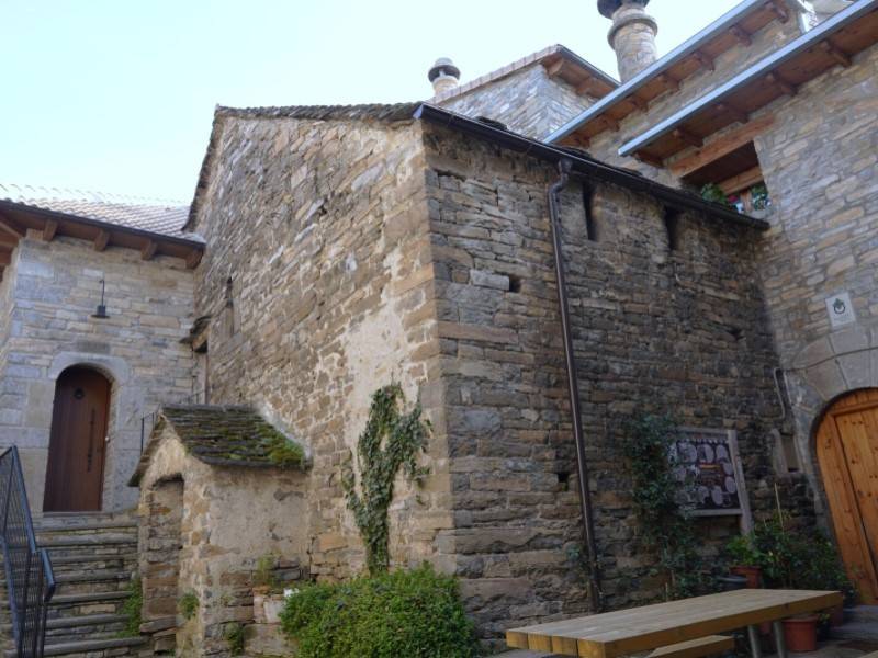 Edifico con tejado rehabilitado en Pueyo de Araguas.