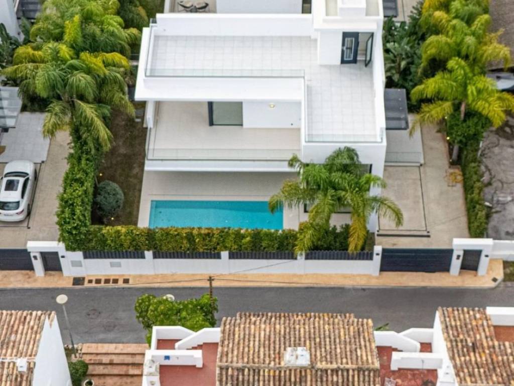 Una moderna villa independiente se encuentra en una de las zonas más exclusivas de Marbella, en la urbanización cerrada de Rio Verde, en Beach Side Golden Mile, a solo 100 metros de la playa. La característica única de esta villa es la combinación perfecta entre su impresionante ubicación y su precio atractivo. La mansión cuenta con 4 dormitorios, 5 baños y amplias terrazas en cada planta, ideales para hacer barbacoas y reunirse con amigos. Una piscina privada te mantendrá fresco durante los largos veranos españoles. Estas increíbles viviendas están situadas cerca de supermercados y a solo 3 minutos a pie de Puerto Banús. Además, existe la posibilidad de utilizar un espacio adicional para crear un dormitorio más, sumando un total de 5 habitaciones. La villa en Rio Verde es espaciosa, llena de luz natural y está equipada con todas las comodidades necesarias. Dispone de una cocina moderna totalmente equipada, una sala de juegos, una sala de cine, un trastero y un cuarto de lavandería.