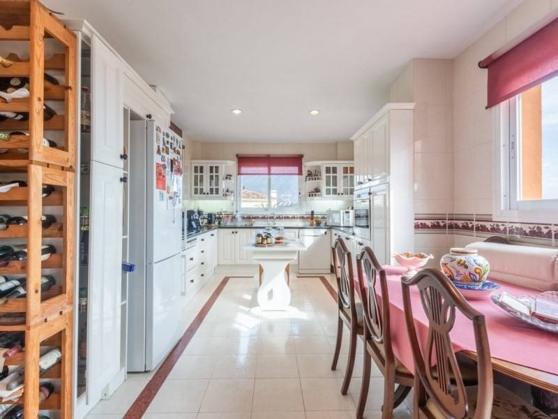 Al entrar en esta propiedad orientada al sur, se percibe inmediatamente el ambiente espacioso y acogedor, que recuerda a una villa. El hall de entrada, de generosas proporciones, cuenta con un aseo de invitados. El salón principal cuenta con una amplia sala de estar complementada por una chimenea. Junto al salón hay un comedor y una cocina totalmente amueblada y equipada, todo ello con preciosas vistas al mar.
