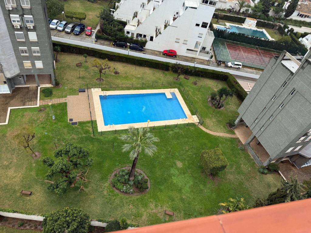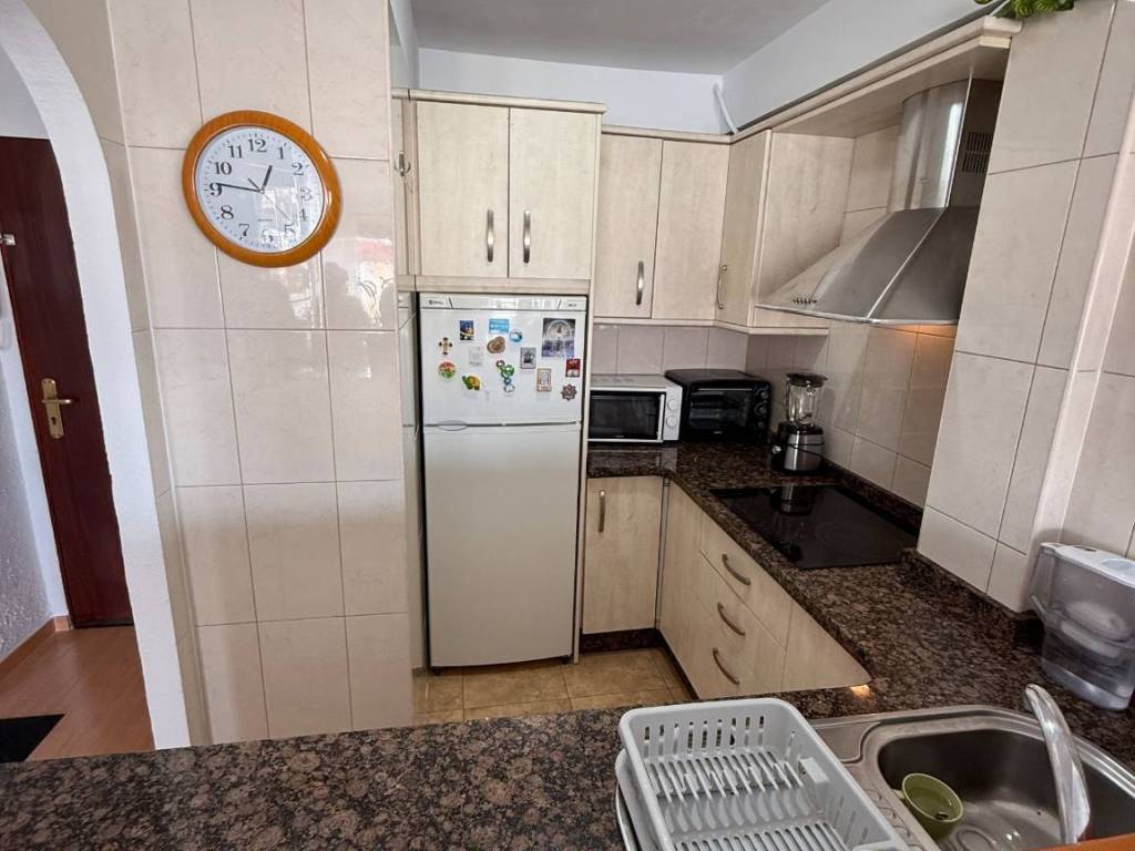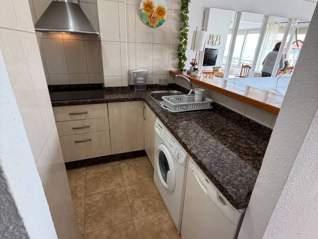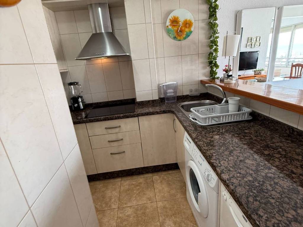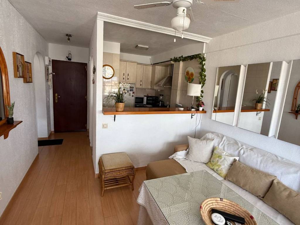 Magnífica vivienda con orientación SURESTE, perfecta para entrar a vivir! VISTAS AL MAR! Este piso cuenta con: 1 Habitación Cocina americana, equipada y amueblada. Cuarto de baño completamente equipado. Terraza. Zonas comunes muy completas. Ascensor Piscina y zonas ajardinadas!