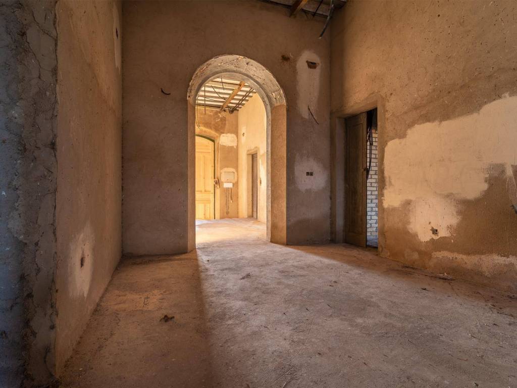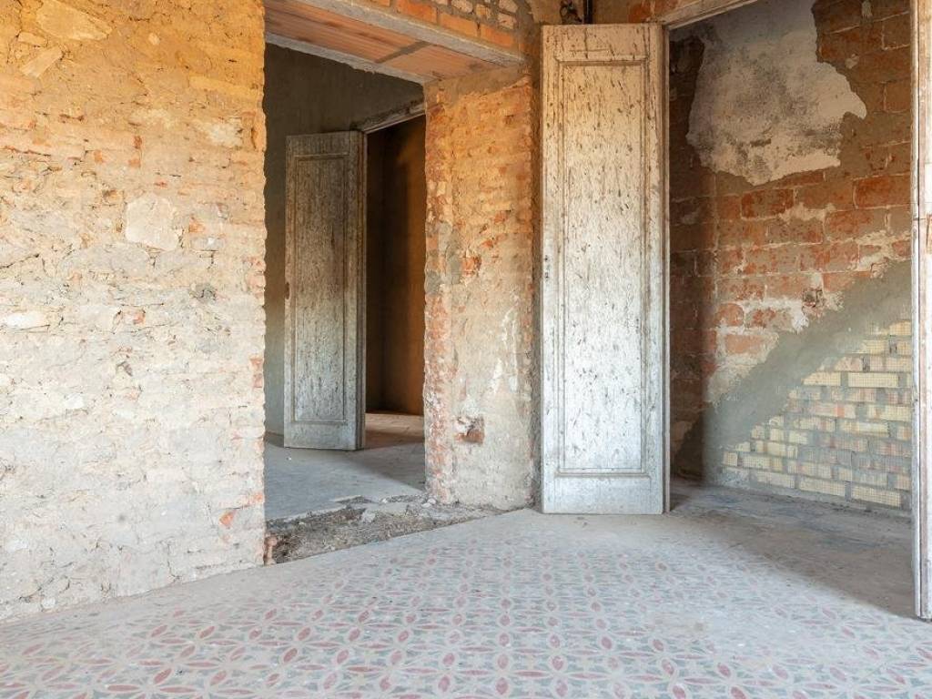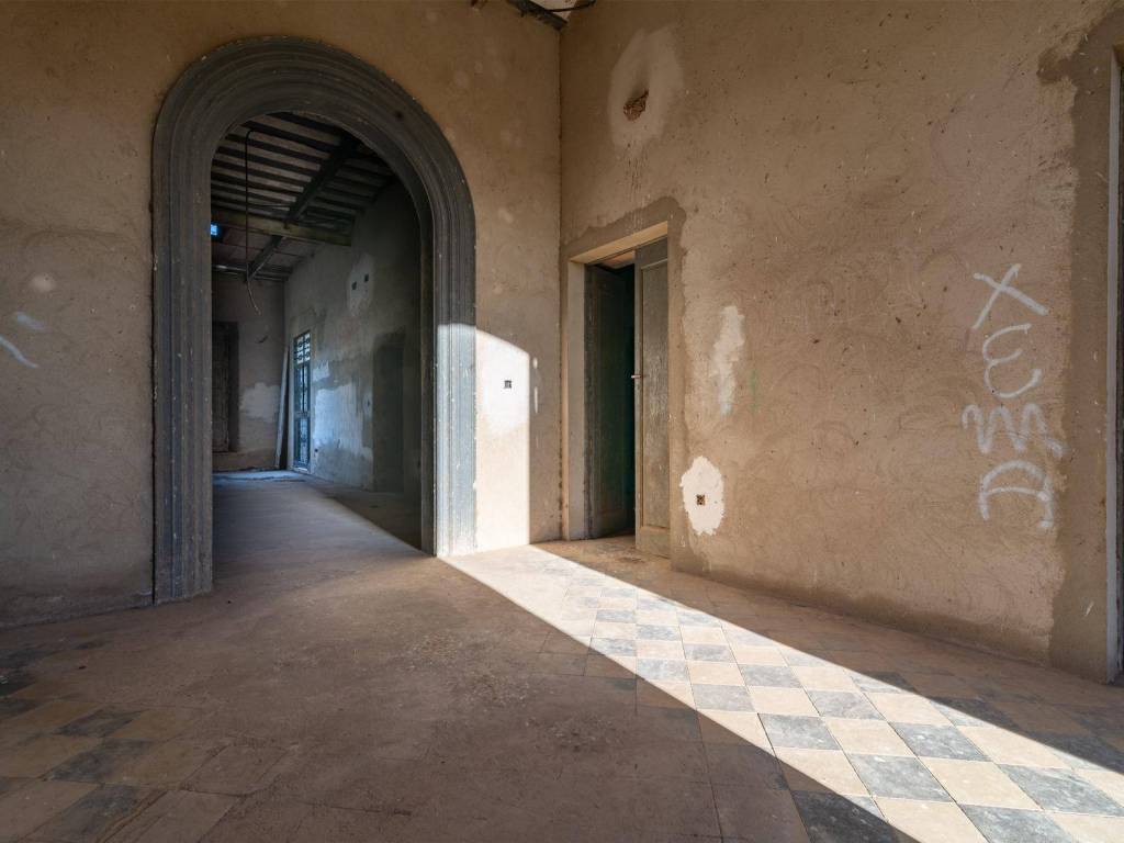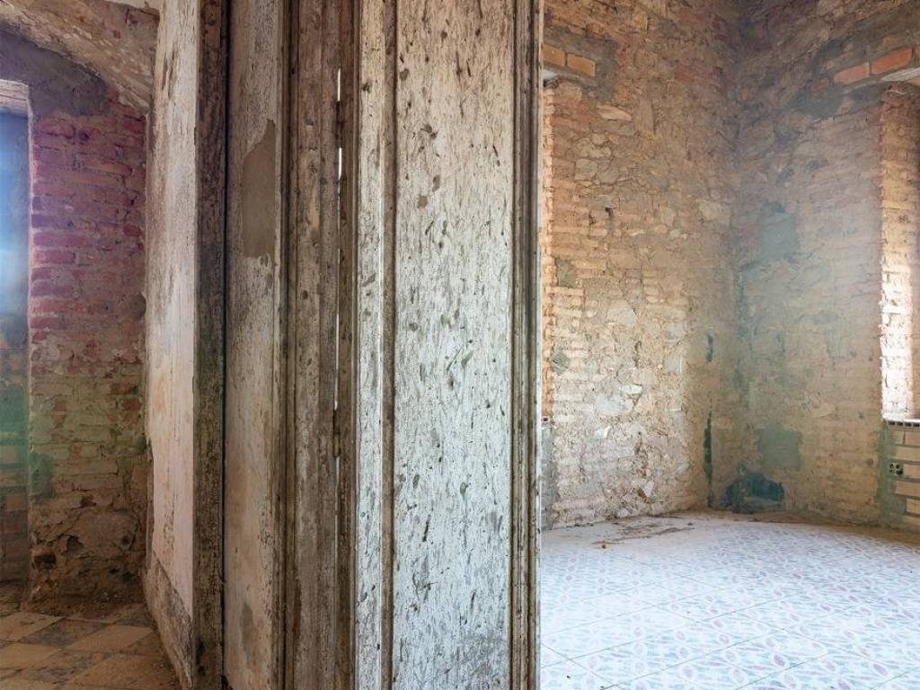 Fachada monumental con elementos decorativos de la época, ideal para rehabilitar y conservar su encanto original.