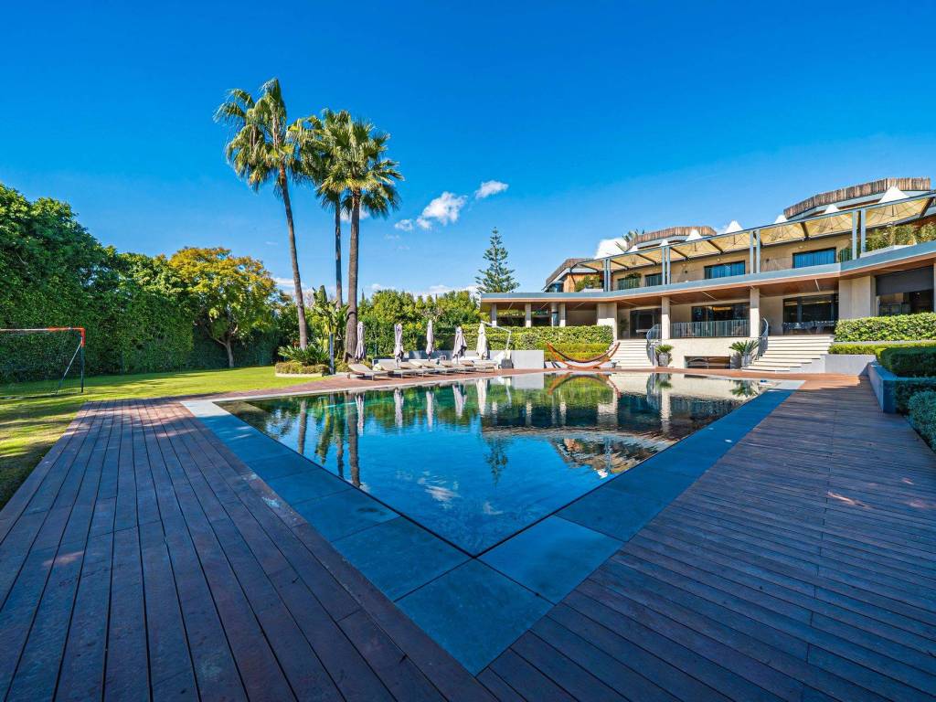 Increible villa-mansion, de lujo en primera línea de golf en Guadalmina Baja. 3.106 m2 de parcela. -1.303 m2 construidos. 10 dormitorios. -10 baños. Andando a pocos minutos del paseo marítimo y de famosos chiringuitos, colegios internacionales y todo tipo de amenidades. A pocos minutos en coche de San Pedro y de Puerto Banús con sus exclusivas boutiques y restaurantes. Detalles: Hall de entrada. Aseo de invitados. Amplio y luminoso salón/comedor con acceso directo a la terraza cubierta con zona de chill out, al jardín y a la piscina. Cocina americana totalmente equipada con electrodomésticos de primera calidad y encimeras de mármol. 10 dormitorios dobles, cada uno con su baño ensuite. El dormitorio principal cuenta con un amplio vestidor. Sauna. Spa. Sala de masajes. Sala de cine. Sala de juegos. Gimnasio. Garaje para varios coches. Cuenta con una amplia parcela con bonitos jardines tropicales. Precio: 11.500.000€. -. Incredible luxury villa-mansion on the front line of the golf course in Guadalmina Baja. 3,106 m2 plot - 1,303 m2 built area. 10 bedrooms - 10 bathrooms. Just minutes from the seafront promenade and famous beach bars, international schools, and all kinds of amenities. Just a few minutes by car from San Pedro and Puerto Banús with their exclusive boutiques and restaurants. Details: Entrance hall. Guest toilet. Spacious and bright living/dining room with direct access to the covered terrace with chill-out area, the garden, and the pool. Fully equipped open-plan kitchen with top-quality appliances and marble countertops. 10 double bedrooms, each with an ensuite bathroom. The master bedroom has a large dressing room. Sauna. Spa. Massage room. Cinema room. Games room. Gym. Garage for several cars. It features a large plot with beautiful tropical gardens. Price: €11.500,000