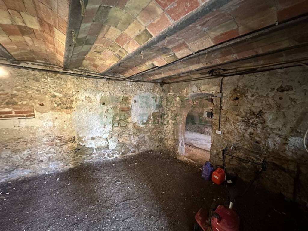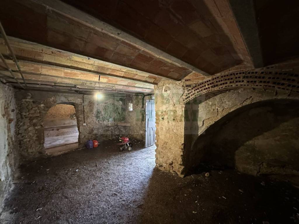 La vivienda se distribuye en planta baja y dos niveles. En la planta baja encontramos las antiguas cuadras: varias estancias de gran amplitud, con techos abovedados, suelos de cemento pulido y una estructura robusta en piedra que ofrece un abanico de posibilidades para su restauración y transformación en espacios habitables o zona de uso complementario. Desde la calle, se accede directamente al garaje.