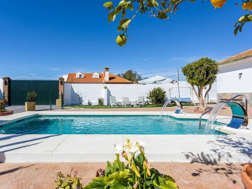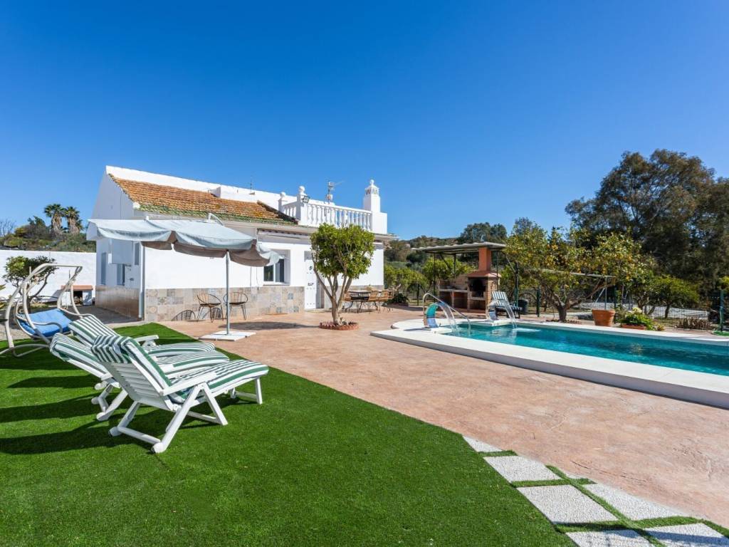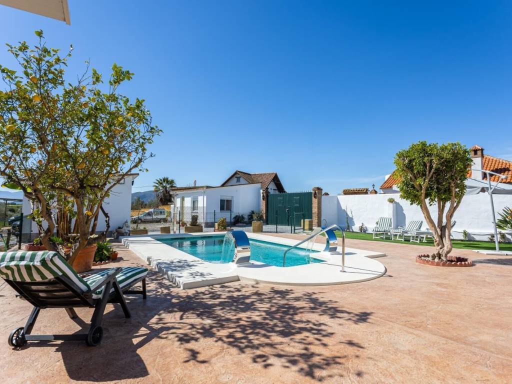PRECIOSA CASA RURAL CON LICENCIA TURÍSTICA distribuida en: 8 Habitaciones 6 Cuartos de baños Cocina amueblada y equipada Piscina Parcela de 5000m2 Plazas de garaje Cultivo de Cítricos, Olivos e Higueras. Placas solares abastecen la mayor parte del consumo energético.