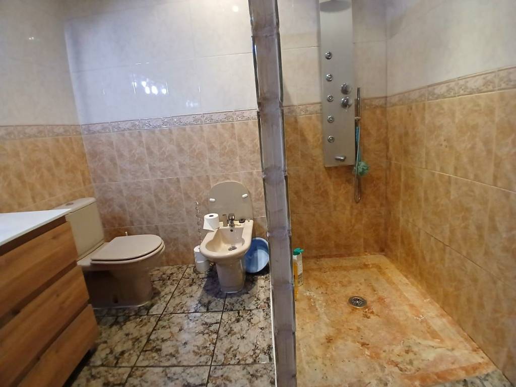 Planta baja con una amplia cochera con capacidad para varios vehículos, con varias estancias como son un salón con chimenea, aseo y cuarto de calderas, y una de las entradas al ascensor (que dispone la vivienda).