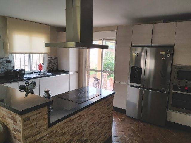 Alquiler de larga temporada. Con 1.500 metros de terreno, porche delantero, zona de barbacoa. Casa con 4 dormitorios, cocina abierta a salón con todos los electrodomésticos y frigorífico americano, chimenea, 2 baños uno de ello con bañera el otro plato ducha. Aire acondicionado f/c central mas una consola en salón. Grifo de agua potable mas pozo. Cuarto trastero y baño exterior. Zona de aparcamiento techado. Puerta exterior automática mas una pequeña auxiliar. Comunidad incluida en precio, suministro independiente.