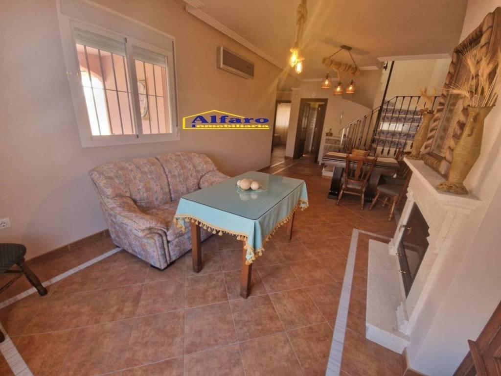 -en la planta baja nos encontramos amplio porche, 1 baño, 2 dormitorios con armarios empotrados, amplio salon-comedor con chimenea, cocina totalmente amueblada y equipada con acceso al patio trasero, lavadero, trastero y zona de aparcamiento para 3-4 vehiculos.