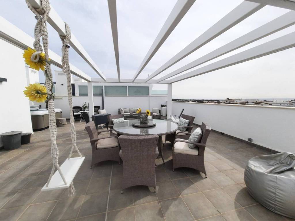 Magnífico ático dúplex en la zona céntrica de San Pedro de Alcántara. La construcción del edificio es muy reciente. En la planta baja hay una cocina americana moderna y totalmente equipada, salón, dormitorio con baño privado y aseo para invitados. En primera planta se encuentra un gran terraza con impresionantes vistas panorámicas despejadas. En la segunda planta tenemos un gran solarium con jacuzzi y pérgola con muebles de jardín y zona de barbacoa. Su orientación es suroeste, por lo que cuenta con una iluminación sorprendente durante todo el día. Tiene vistas panorámicas. En el precio esta incluida plaza de garaje subterráneo.