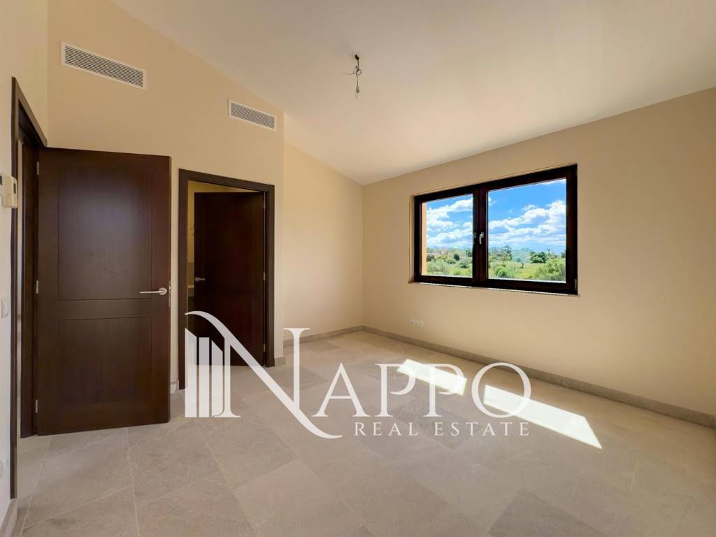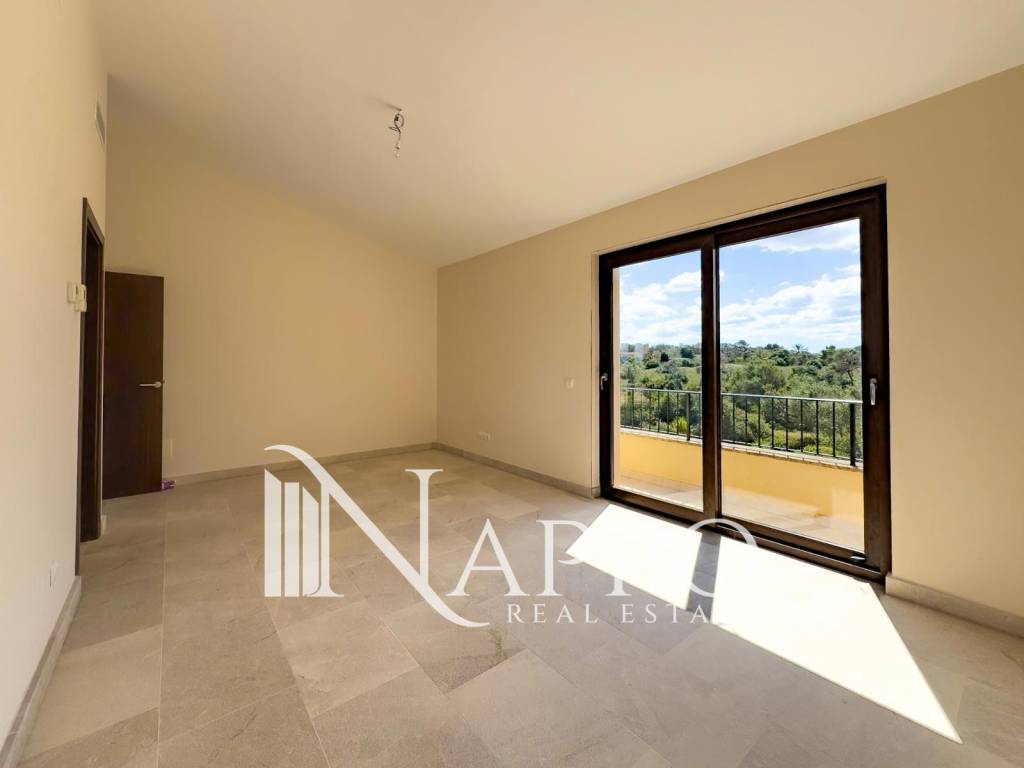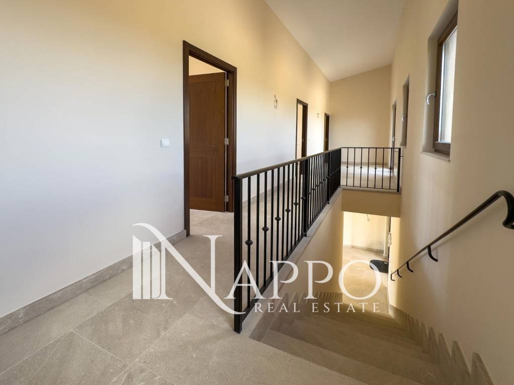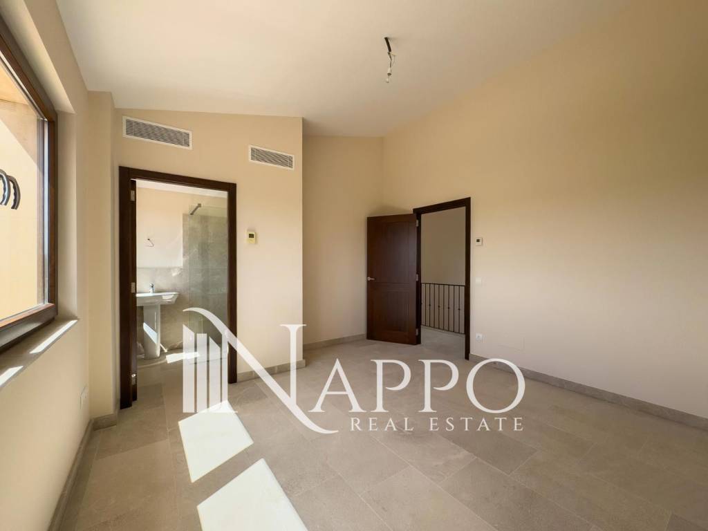 En la planta superior, tres dormitorios adicionales, todos con baño en suite ofrecen acceso directo a una terraza privada con vistas despejadas, proporcionando privacidad y comodidad a cada miembro del hogar.