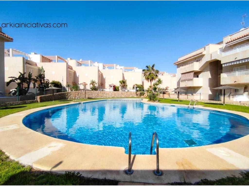 Arkia Iniciativas Inmobiliarias pone a la venta este apartamento en los Collados. La vivienda está lista para entrar a vivir. Consta de 105 metros distribuidos en dos dormitorios, dos baños, cocina- comedor y balcón. Está en una urbanización tranquila, con varias piscinas comunitarias, zonas verdes para pasear y un portero 24h.