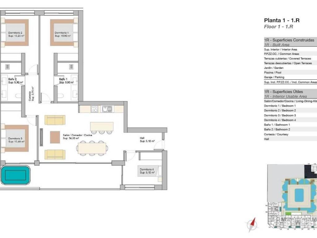 Piscina cubierta climatizada y gimnasio totalmente equipado.