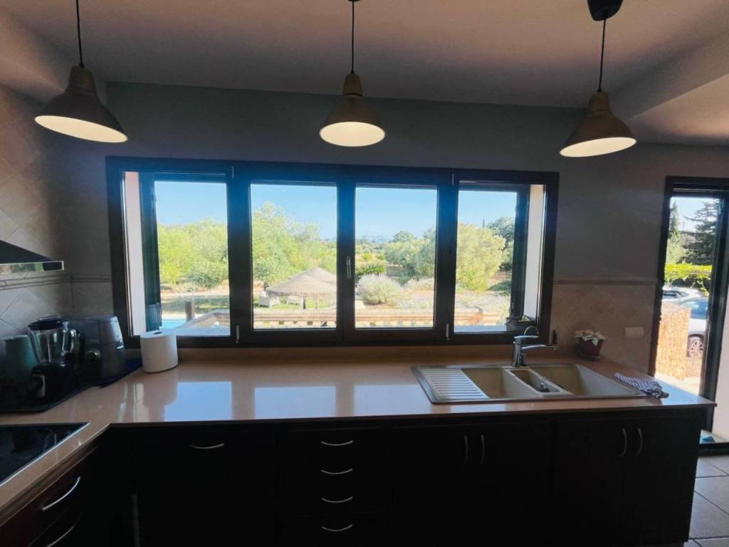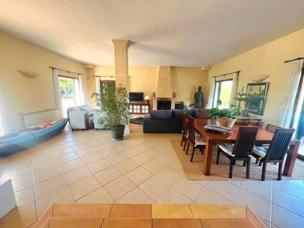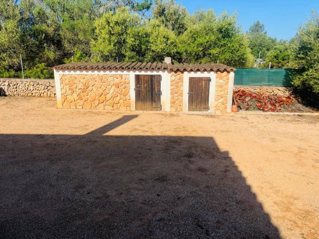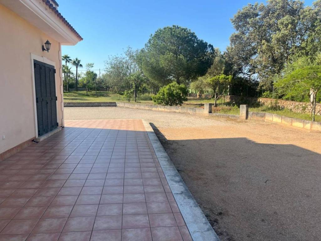 La parcela, de 15.921 m² completamente llana, está rodeada de jardines con riego automático, olivos, naranjos, zonas de descanso, una piscina de depuración salina con porche y unas vistas despejadas a la Serra de Tramuntana. Además, la finca dispone de pozo de vena propio, lo que refuerza su autosuficiencia y comodidad.