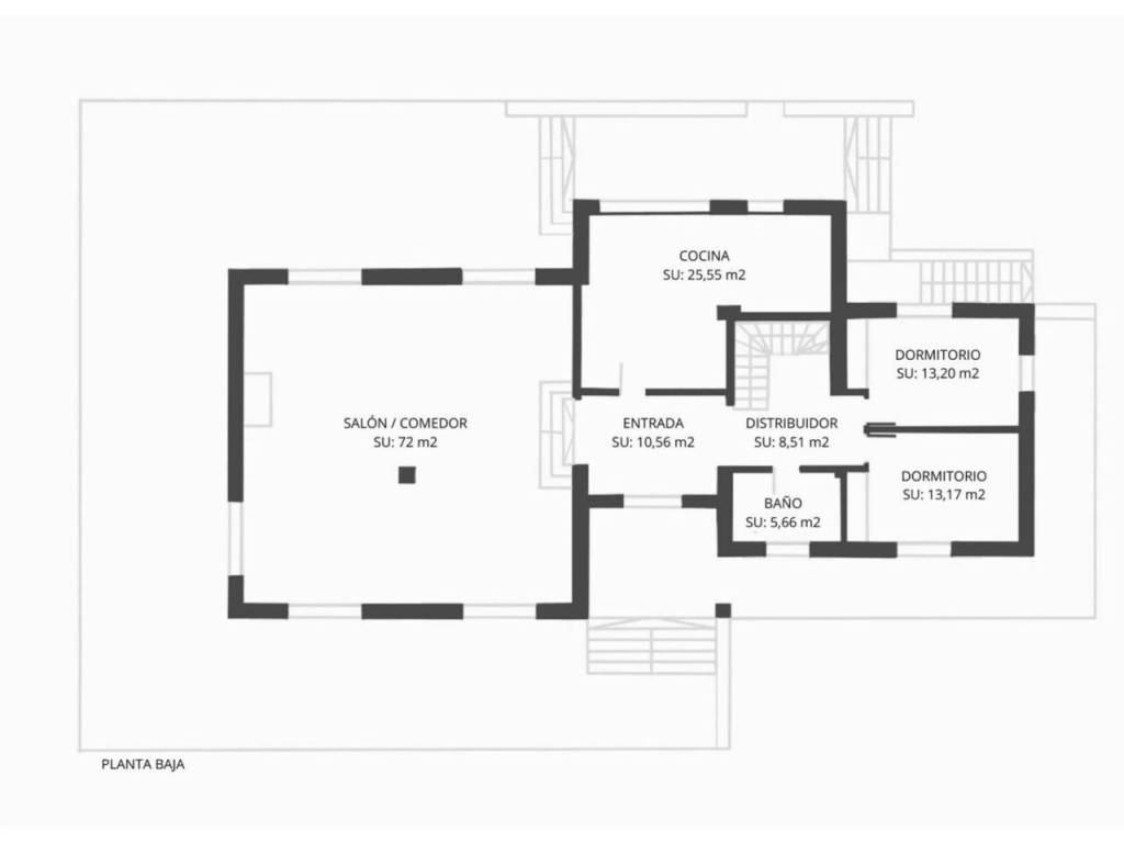 En la planta baja encontramos un acogedor salón a dos ambientes con chimenea, cocina independiente con office y coladuria, dos dormitorios dobles y un baño completo. Las estancias son todas muy luminosas y con salidas al exterior.