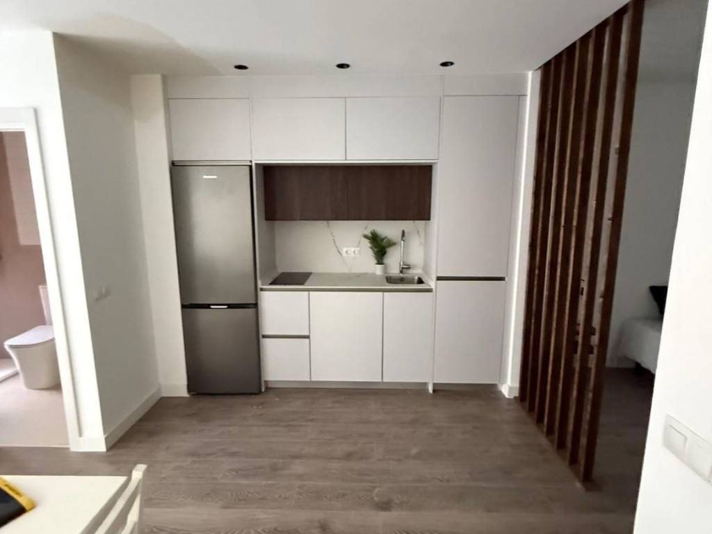 Cocina amueblada y equipada con mueble con encimera de porcelánico y vitrocerámico doble