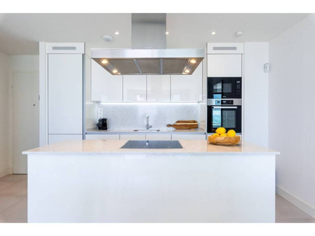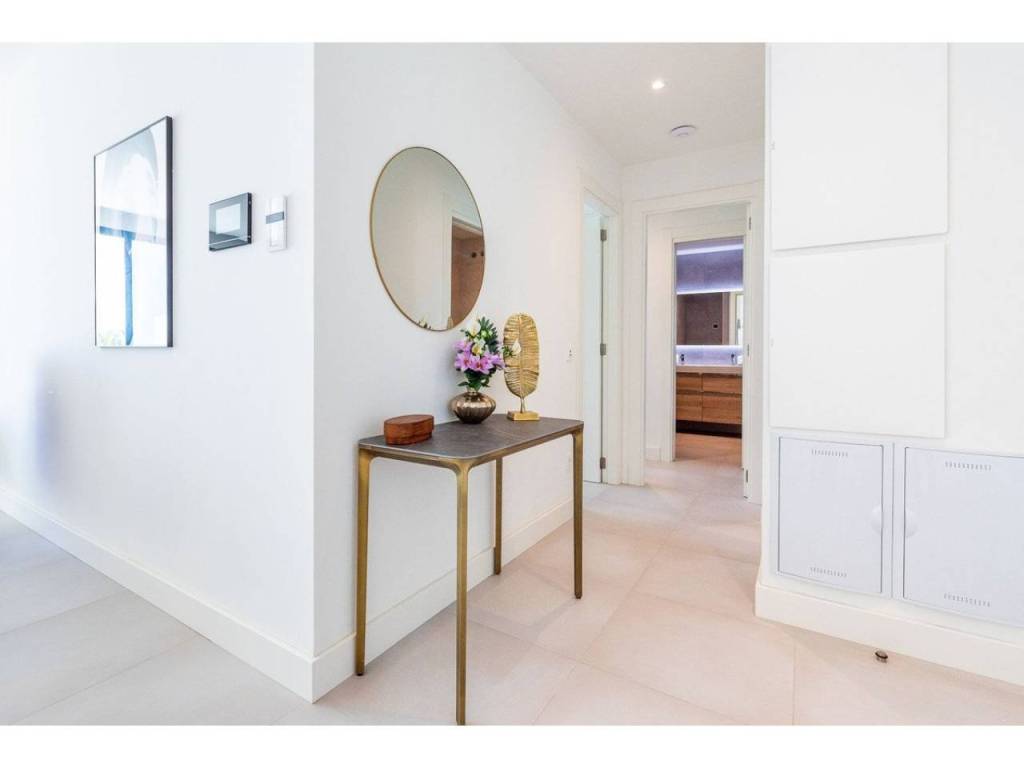 El apartamento dispone de dos dormitorios con baño en suite, un aseo de invitados y una moderna cocina abierta equipada con electrodomésticos Miele de alta gama, incluyendo horno, microondas y lavavajillas.