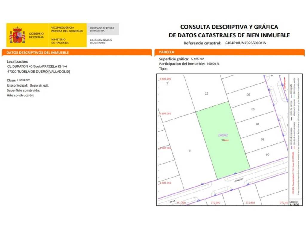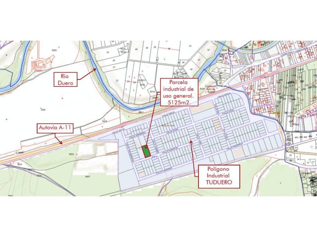 Parcela de uso Industrial IG-1-4 del Polígono Tuduero en Tudela de Duero. Ubicada a 15 minutos de Valladolid por la A-11. Tiene una superficie de 5125m2 que le otorga una edificabilidad de 3075m2. La clasificación del suelo es de Industria General, válido para gran industria, a diferencia de la mayoría de las parcelas del polígono. Dispone de todos los servicios, viales, accesos, saneamiento, abastecimiento, electricidad, alumbrado, telecomunicaciones, etc, Excelentes comunicaciones.