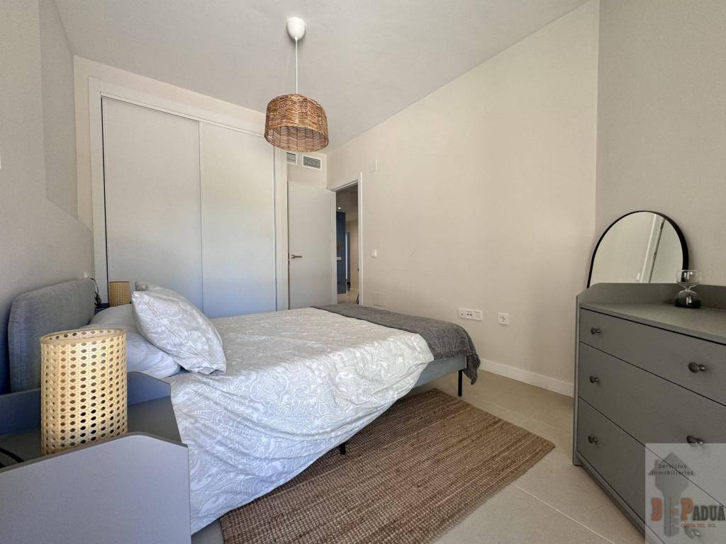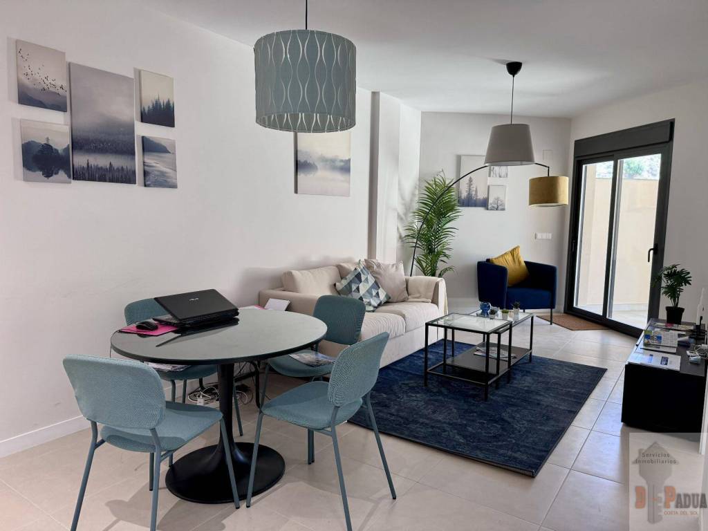 La vivienda, se encuentra en planta BAJA , consta 1 dormitorio, 1 baño, cocina semiequipada (Placa vitrocerámica y campana extractora), amplio salón con acceso terraza de 48 m2 , proporcionando gran luminosidad al interior y al mismo tiempo conexión con el exterior, arquitectura moderna, maximizando el aprovechamiento de espacios y diseñado para disfrutar del máximo confort. Como anejos incluidos plaza de garaje y trastero.