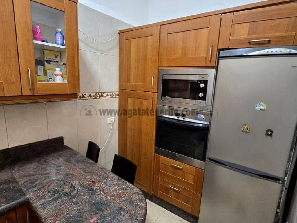La cocina está equipada con electrodomésticos esenciales, incluyendo frigorífico y horno. Estas instalaciones modernas garantizan funcionalidad y comodidad diaria, manteniendo una estética limpia e integrada.