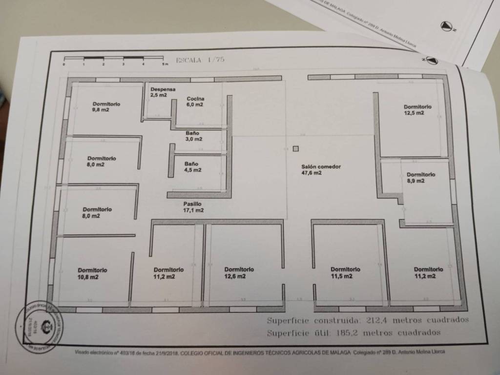 La vivienda consta de amplio salón-comedor con chimenea, cocina, nueve dormitorios y dos baños.