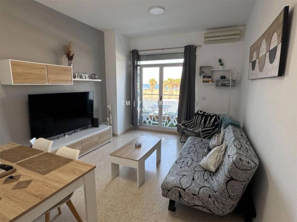 CM PROPERTIES presenta: Encantador apartamento frente al mar en El Cabanyal. Despierta cada mañana con vistas al mar Mediterráneo y disfruta de la serenidad que solo vivir junto a la playa puede ofrecer. Este acogedor apartamento, situado en primera línea de playa en el tradicional barrio marinero de El Cabanyal, es perfecto para quienes buscan confort, tranquilidad y una experiencia costera auténtica. Una terraza para disfrutar del Mediterráneo El balcón, equipado con mesa, banco y sillas, es el lugar ideal para desayunos al amanecer, cenas al atardecer o simplemente relajarse con la brisa marina y el sonido de las olas. Comodidad y funcionalidad en cada rincón. El salón es amplio y luminoso, con un cómodo sofá cama, Smart TV, aire acondicionado, radiadores, ventilador, lavadora y secadora. Todo está pensado para que tu estancia sea tan cómoda como en casa. La cocina, moderna y totalmente equipada, incluye cafetera, tostadora, hervidor de agua y todos los utensilios necesarios para cocinar con libertad