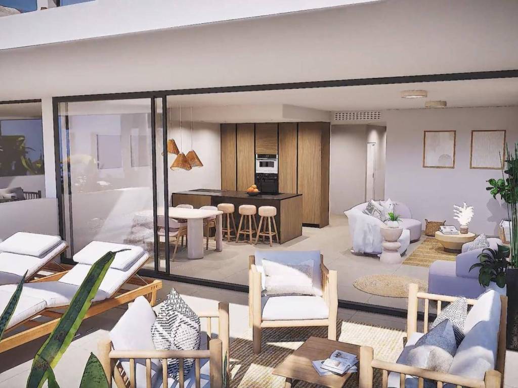 En una de las zonas más tranquilas y exclusivas de Mar de Cristal, se levanta un elegante conjunto de apartamentos de diseño contemporáneo, a solo 400 metros del mar. Las viviendas han sido concebidas para ofrecer un estilo de vida relajado, luminoso y confortable, integrando amplios espacios abiertos, acabados de alta calidad y una cuidada atención al detalle. Con opciones de 2 y 3 dormitorios, este proyecto ha sido creado para quienes buscan privacidad, diseño y funcionalidad, todo en un entorno privilegiado junto al Mediterráneo.