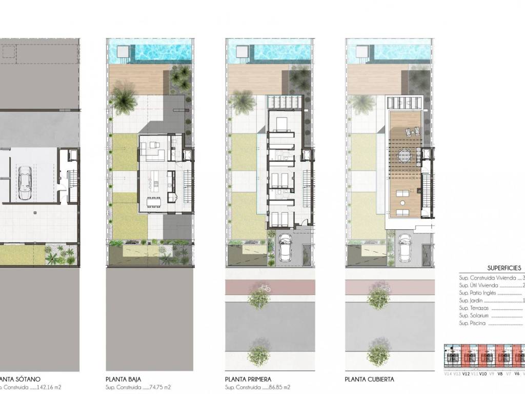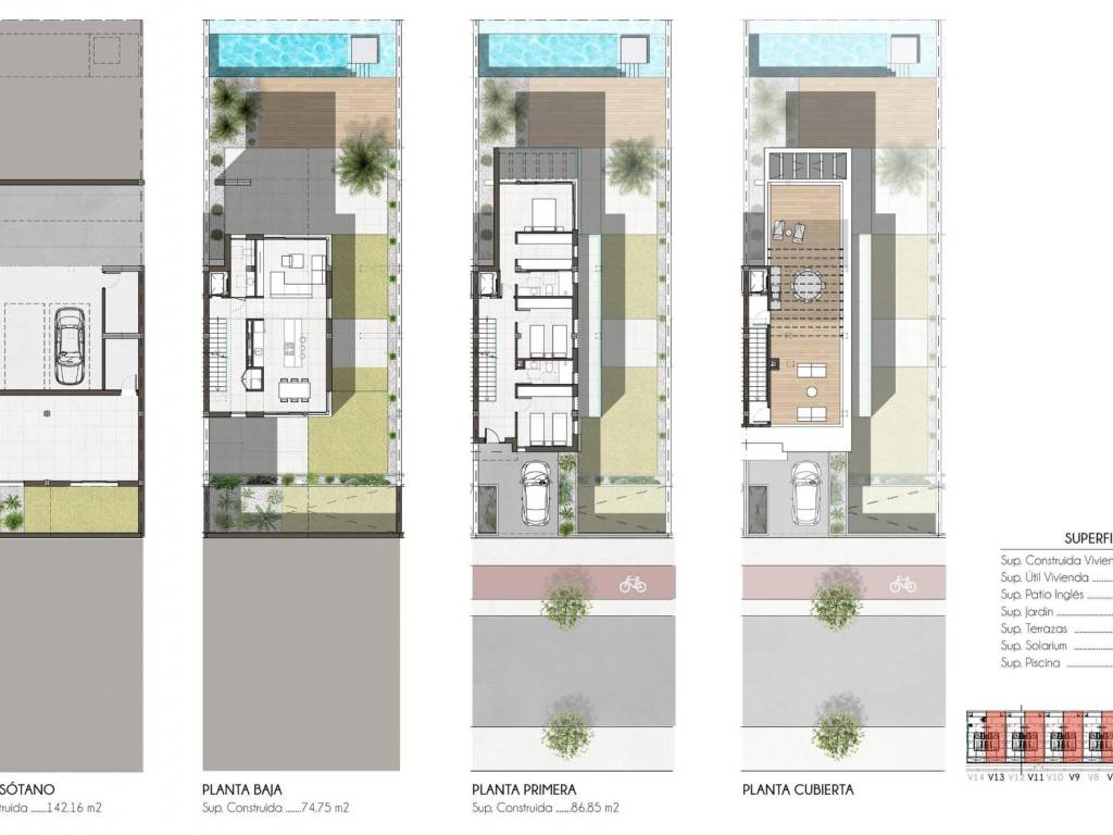 En el corazón de Alicante, en la vibrante ciudad de Amoros, se encuentran los chalets adosados de una exclusiva promoción que ofrece lujo y comodidad. Esta nueva construcción está compuesta por catorce inmuebles distribuidos inteligentemente en tres plantas, con una superficie total de 303 m. Cada chalet cuenta con aparcamiento privado tanto exterior como interior, asegurando comodidad para los residentes. Además, dispone de piscina privada, terraza, solárium, un amplio sótano y trastero, proporcionando un espacio versátil y práctico.Estas viviendas se han diseñado para aprovechar al máximo su orientación, permitiendo vistas espectaculares hacia el entorno natural y el campo, lo que mejora la calidad de vida de sus habitantes. Con grandes ventanales estratégicamente ubicados, los hogares capturan y distribuyen la luz solar durante el invierno, proporcionando calidez y una iluminación natural en los espacios interiores. Las aberturas en la estructura facilitan una efectiva ventilación cruzada, mejorando el confort térmico.El entorno del residencial es un paraíso de vegetación autóctona que no solo realza la belleza del lugar, sino que también contribuye significativamente a la sostenibilidad. Esta abundante flora permite ahorrar en el consumo de agua, facilita la renovación del aire y actúa como un filtro natural de emisiones de CO2, transformando estas viviendas en auténticos hogares bioclimáticos.La vida en estos hogares se complementa con un diseño arquitectónico que prioriza la eficiencia energética. Cada vivienda está equipada y concebida para maximizar el rendimiento energético, promoviendo así un estilo de vida más ecológico y responsable. Con un precio único de 895 000 , estas exclusivas viviendas ofrecen la oportunidad de disfrutar de un hogar innovador, sostenible y de alta calidad en un entorno privilegiado.