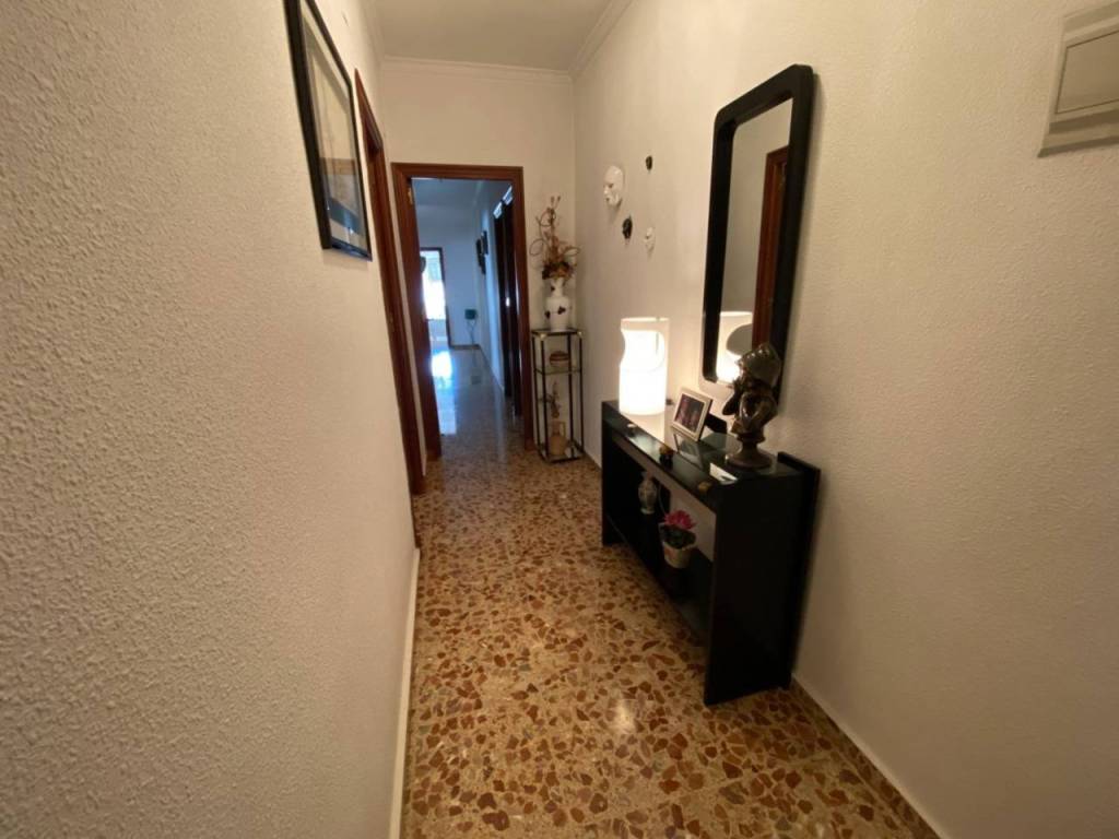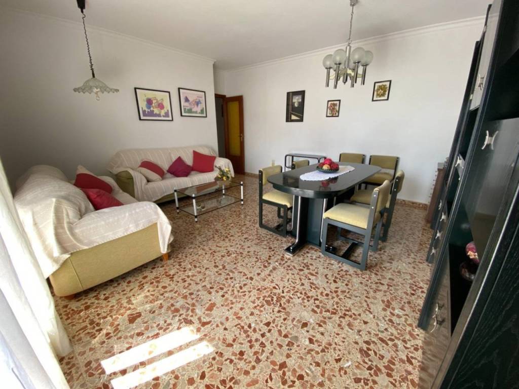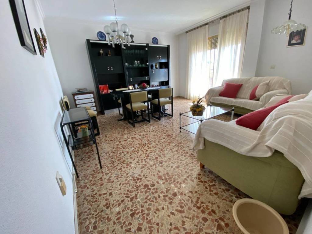 El piso está distribuido en recibidor, un amplio y luminoso salón-comedor con salida a balcón, cocina independiente amueblada, una sala de estar, tres dormitorios, un baño, un aseo, patio interior y terraza descubierta. Sin ascensor. Incluye un local a pie de calle válido como aparcamiento para dos vehículos o incluso como uso de local.
