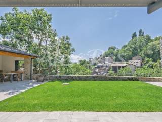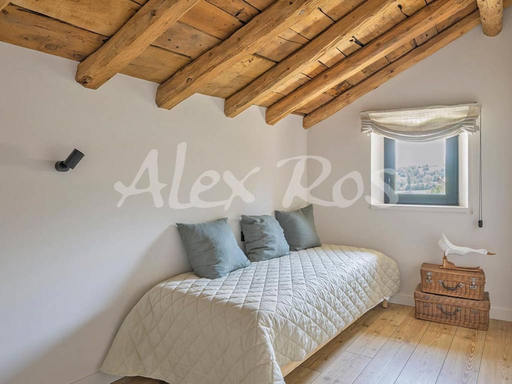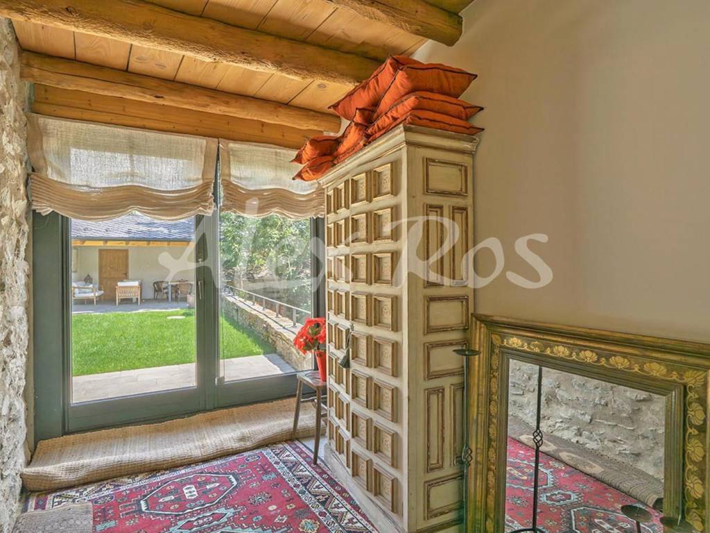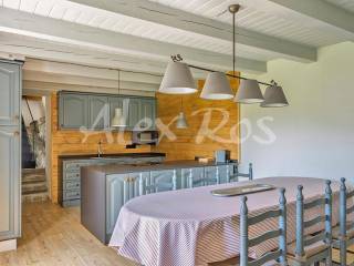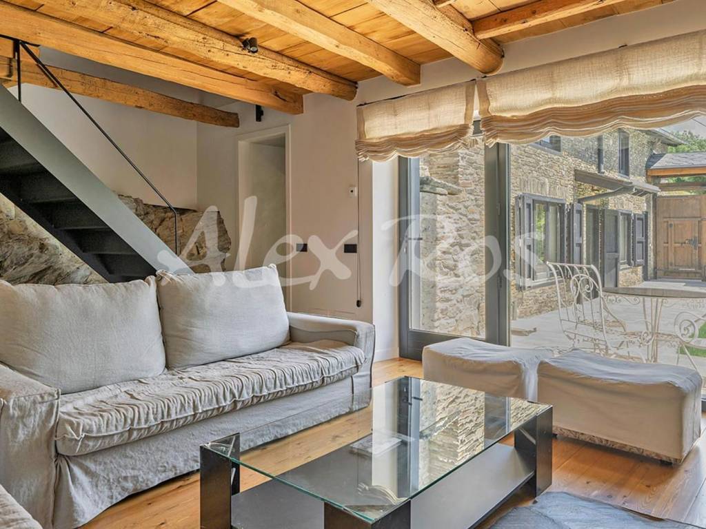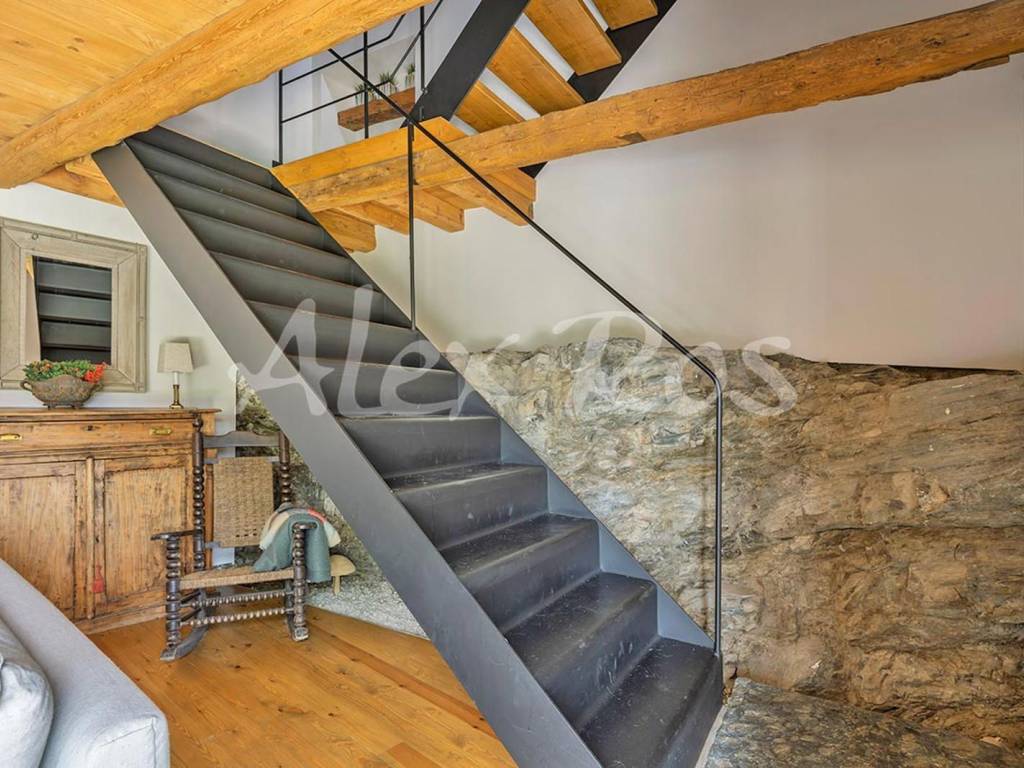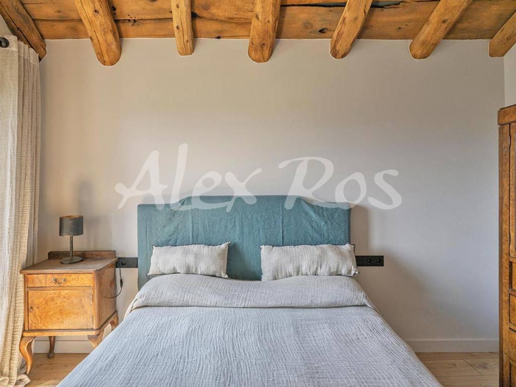 Casa que conserva las vigas típicas de madera, suelos y paredes de piedra, mezclado con elementos modernos.