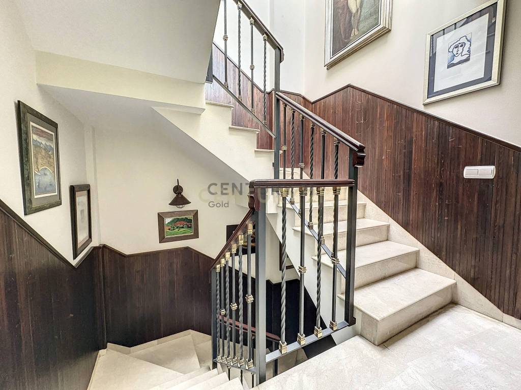 La calidad de los materiales y el equipamiento de esta residencia son simplemente incomparables. Los suelos de mármol italiano y los armarios empotrados de roble aportan una sofisticación única a cada rincón. Una escalera de caracol, elaborada artesanalmente, se convierte en una obra de arte que conecta los diferentes niveles con estilo.