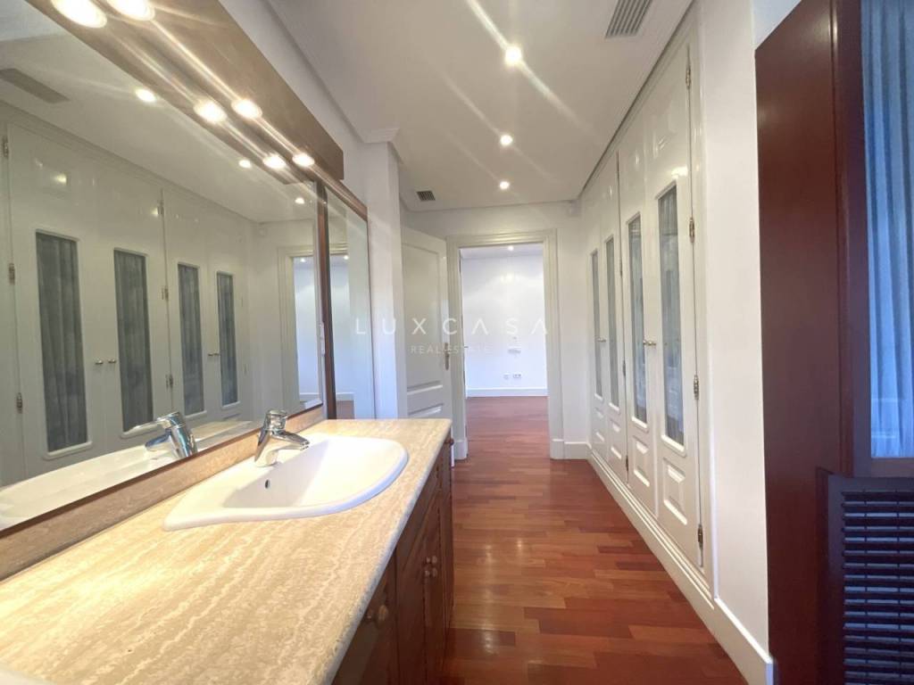 En la primera planta encontramos un grandísimo distribuidor desde donde parten 4 dormitorios de los cuales 3 son dobles tipo suite y 3 baños completos, con estupendos armarios empotrados, todos ellos distribuidos y forrados.