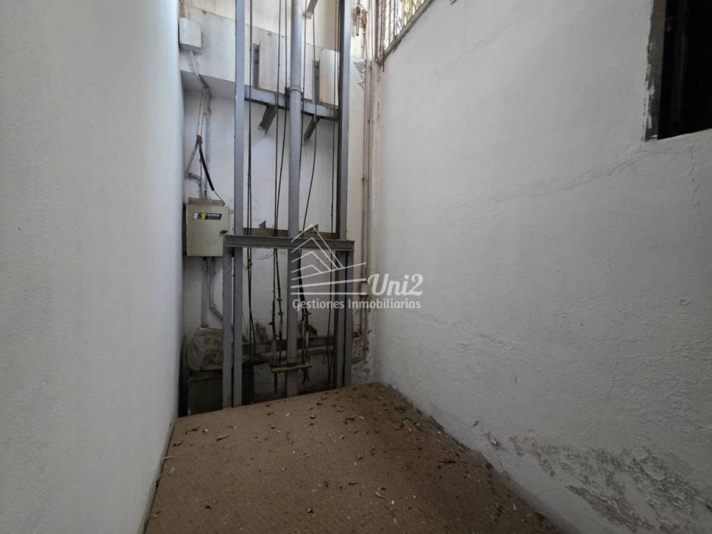 También desde planta baja a primera y a efectos de gestionar almacenamiento y facilitar la logística, cuenta con un montacargas de mediano tamaño desde planta de acceso a sótano y planta primera. (actualmente esta montado pero no operativo).