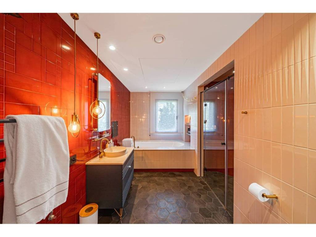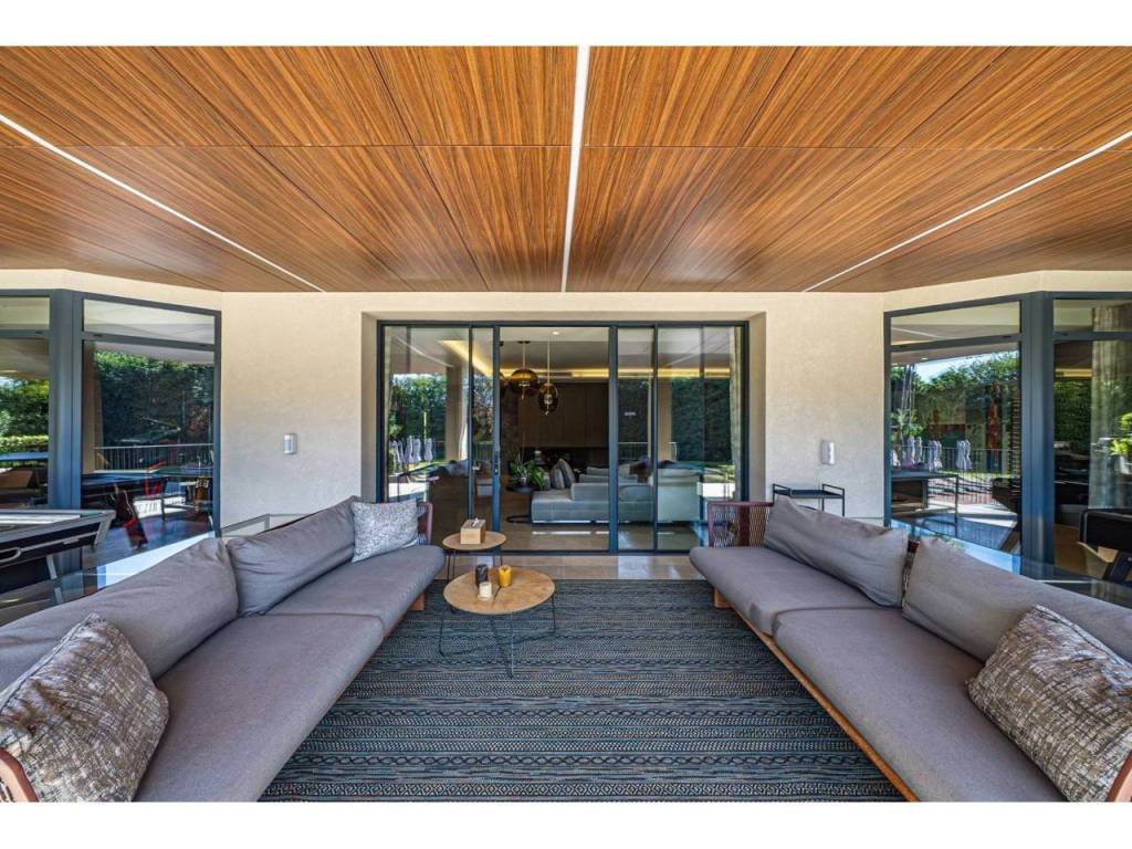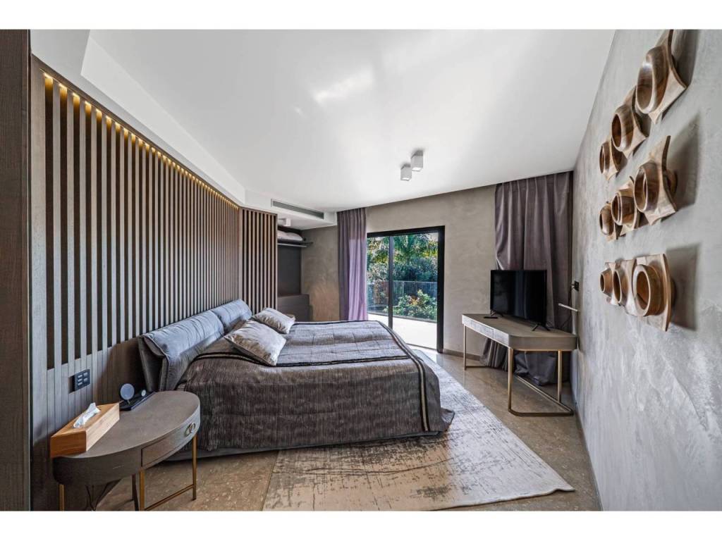 Desde la primera mirada, esta villa cautiva con su arquitectura de líneas limpias y techos acristalados, fusionando lo natural con lo contemporáneo. El salón principal de 102 m² da la bienvenida con una amplitud impresionante, ideal para reuniones sociales de alto nivel. Su cocina gourmet de 31 m², completamente equipada, se comunica con el comedor y la terraza, creando una fluidez perfecta entre los espacios interiores y exteriores.