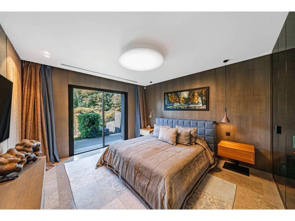 En la primera planta, encontrará varias suites, incluyendo la máster con vestidor de 32 m², baño privado y acceso directo a una amplia terraza con vistas al campo de golf. Los dormitorios adicionales, también en suite, están cuidadosamente distribuidos para brindar privacidad a todos los miembros de la familia o invitados.